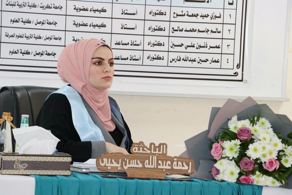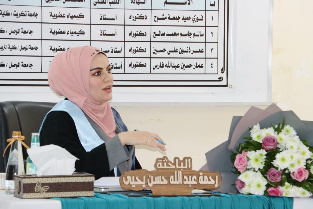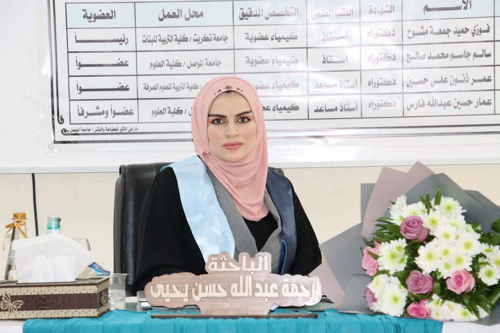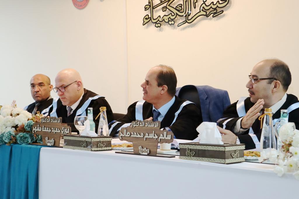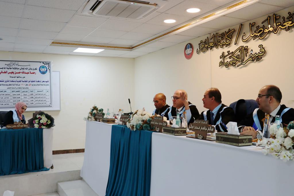 ناقش قسم الكيمياء في كلية العلوم بجامعة الموصل يوم الإثنين الموافق 9 كانون الثاني 2023 رسالة الماجستير الموسومة ” تشييد بعض المركبات الحلقية غير المتجانسة الجديدة باستخدام النتريل المنشط لهيدرازيد- هيدرازون ” ، حضر جانباً منها السيدة عميد الكلية الأستاذ الدكتورة هيام عادل إبراهيم الطائي والسادة معاوني العميد وعدداً من تدريسيي الكلية .تناولت الرسالة التي تقدمت بها الطالبة ( رحمة عبد الله حسن يحيى ) في فرع الكيمياء العضوية تحضير العديد من المركبات العضوية منها مركبات الفا, بيتا – كاربونيل غير المشبعة ومركبات حلقية غير متجانسة خماسية الحلقة متمثلة بالبايرازول والثايوفين وسداسية الحلقة متمثلة بالايمين وكومارين عبر مسارات مختلفة من خلال استخدام المادة الأولية هيدارزيد-هيدرازون التي تمتلك فاعلية دوائية معروفة ولها طيف واسع في مختلف المجالات والتي حُضرت من تفاعل المادة الاولية الاساسية المحضرة سيانو اسيتو هيدارزيد مع مادة piperonal . ومن ثم دراسة الخواص االفيزيائية والطيفية (FT-IR, 1H-NMR ,13C-NMR) لاثبات جميع الصيغ التركيبة للمركبات المحضرة.ترأس لجنة المناقشة الأستاذ الدكتور فوزي حميد جمعة وعضوية كل من الأستاذ المساعد الدكتور عمر ذنون علي و الأستاذ الدكتور سالم جاسم محمد ، وبإشراف وعضوية الأستاذ المساعد الدكتور عمار حسين عبد الله.قدمت السيدة عميد الكلية كتاب شكر وتقدير إلى الأستاذ الدكتور فوزي حميد جمعة من كلية التربية للبنات / جامعة تكريت ؛ لتكبده عناء السفر و ترأسه لجنة المناقشة .شعبة الإعلام والعلاقات العامةالإثنين 9 كانون الثاني 2023