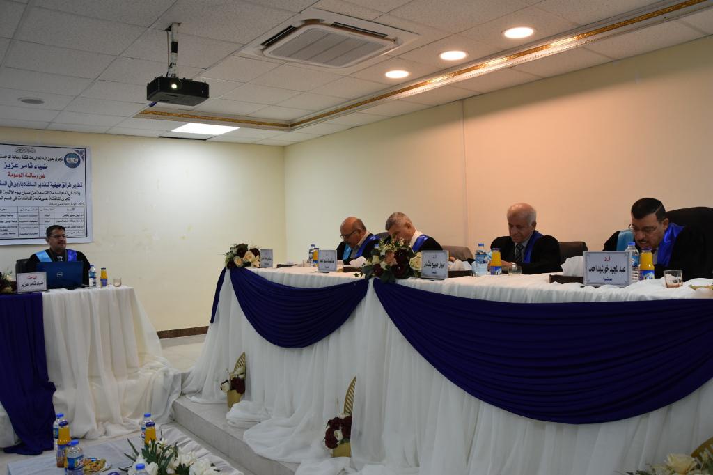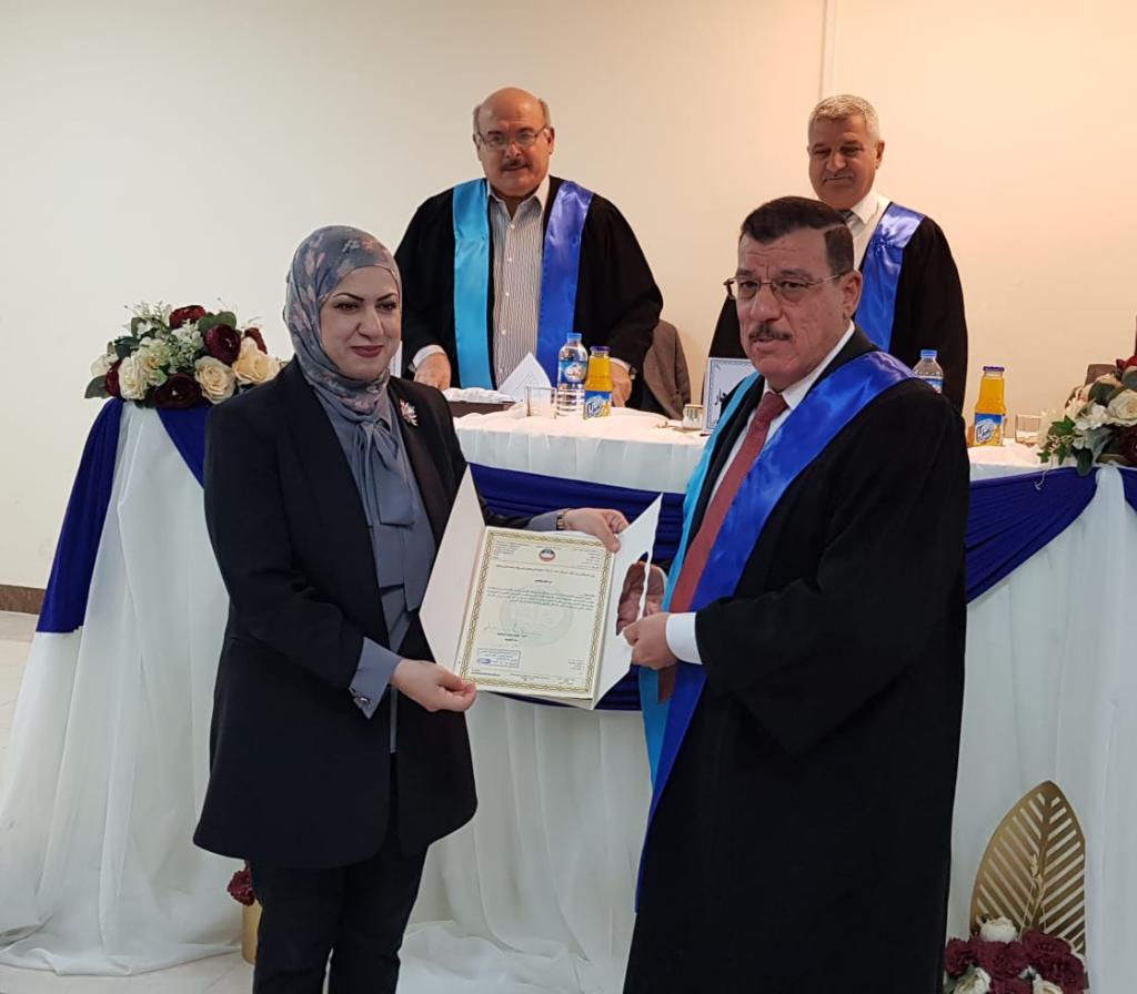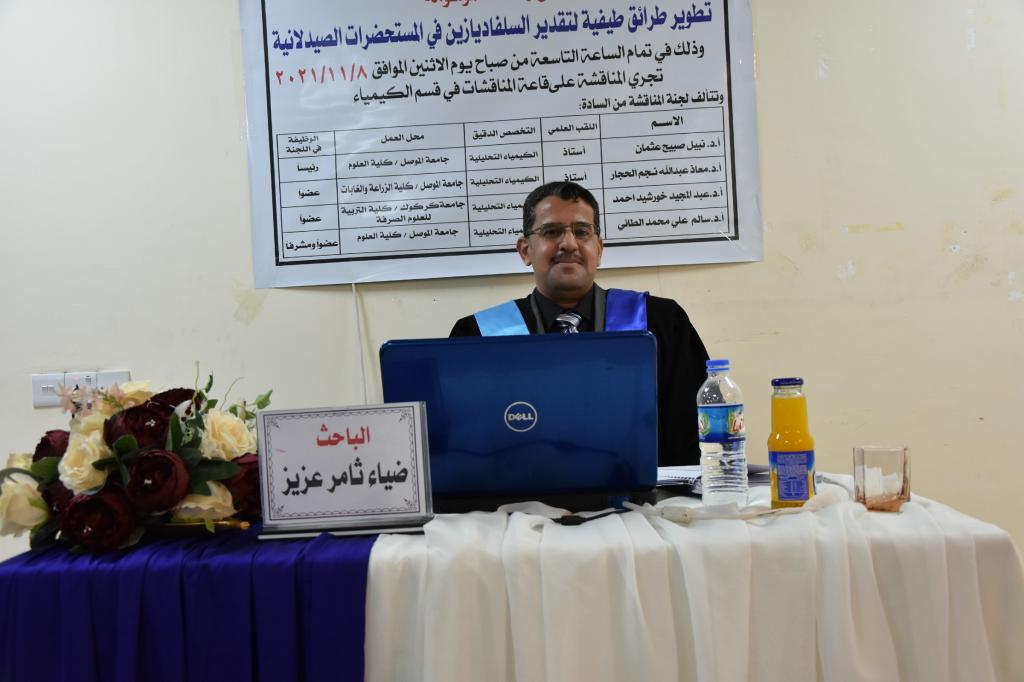 ناقشت كلية العلوم في جامعة الموصل يوم الإثنين الموافق 8 تشرين الثاني 2021 رسالة الماجستير الموسومة ” تطوير طرائق طيفية لتقدير السلفاديازين في المستحضرات الصيدلانية ” ، حضر جانباً السيدة عميد الكلية الأستاذ المساعد الدكتورة هيام عادل إبراهيم و السيد المعاون الإداري الدكتور عمر عادل شريف وعدداً من تدريسيي الكلية .تناولت الرسالة التي تقدم بها الطالب ( ضياء ثامر عزيز فتحي ) من قسم الكيمياء / فرع الكيمياء التحليلية تركيب العقار واهميته واستخداماته وعدد من الطرائق السابقة لتقدير وكذلك شرح مفصل عن الكواشف المستخدمة في الطرائق الطيفية ودراسة الظروف المثلى لكل طريقة .و هدفت الدراسة الى تطوير طرائق سهلة وسريعة وباستخدام أجهزة متوفرة لتقدير عقار السلفاديازين في المستحضرات الصيدلانية ، كما تطرقت الدراسة إلى تقدير السلفاديازين في المستحضرات الصيدلانية وبأشكاله المختلفة ( الحبوب والحقن العلاجية والكريمات ) باستخدام الاجهزة المتوفرة في قسم الكيمياء .استنتجت الدراسة إمكانية تطبيق الطرائق الثلاث في تقدير السلفاديازين في مستحضراته الصيدلانية وبنسبة خطأ مقبولةترأس لجنة المناقشة الأستاذ الدكتور نبيل صبيح عثمان وعضوية كل من الأستاذ الدكتور معاذ عبدالله نجم والأستاذ الدكتور عبد المجيد خورشيد أحمد وبإشراف وعضوية الأستاذ الدكتور سالم علي محمد الطائي .قدمت السيدة عميد الكلية كتاب شكر وتقدير الى الممتحن الخارجي الأستاذ الدكتور عبد المجيد درويش من كلية التربية للعلوم الصرفة / جامعة كركوك ؛ لتحمله عناء السفر و حضور المناقشة .