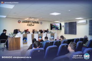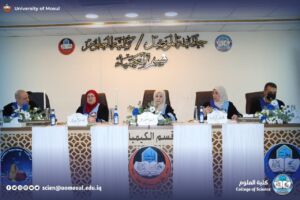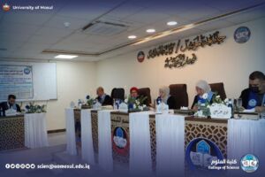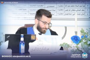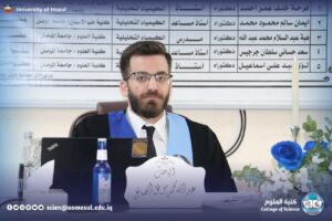 وتألّفت لجنة المناقشة من الأستاذ الدكتورة فرحة خلف عمر أحمد رئيسًا، وعضوية الأستاذ المساعد الدكتورة إيمان سالم محمود محمد، والمدرس الدكتورة هبة عبدالسلام محمد عبدالله، وبإشراف وعضوية الأستاذ المساعد الدكتور سعد حساني سلطان هاشم، والأستاذ الدكتور لؤي عبد علي الهلالي.