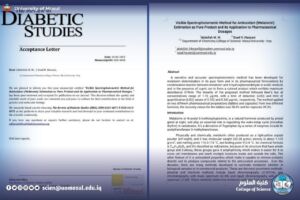 أما الجزء الثاني فقد تناول تقدير هرمون الميلاتونين من خلال تفاعلات تكثيف عضوية نتج عنها مركب ملون مستقر، وتميزت الطريقة بدقتها وإمكانية تطبيقها في المستحضرات الصيدلانية دون الحاجة إلى خطوات فصل معقدة.