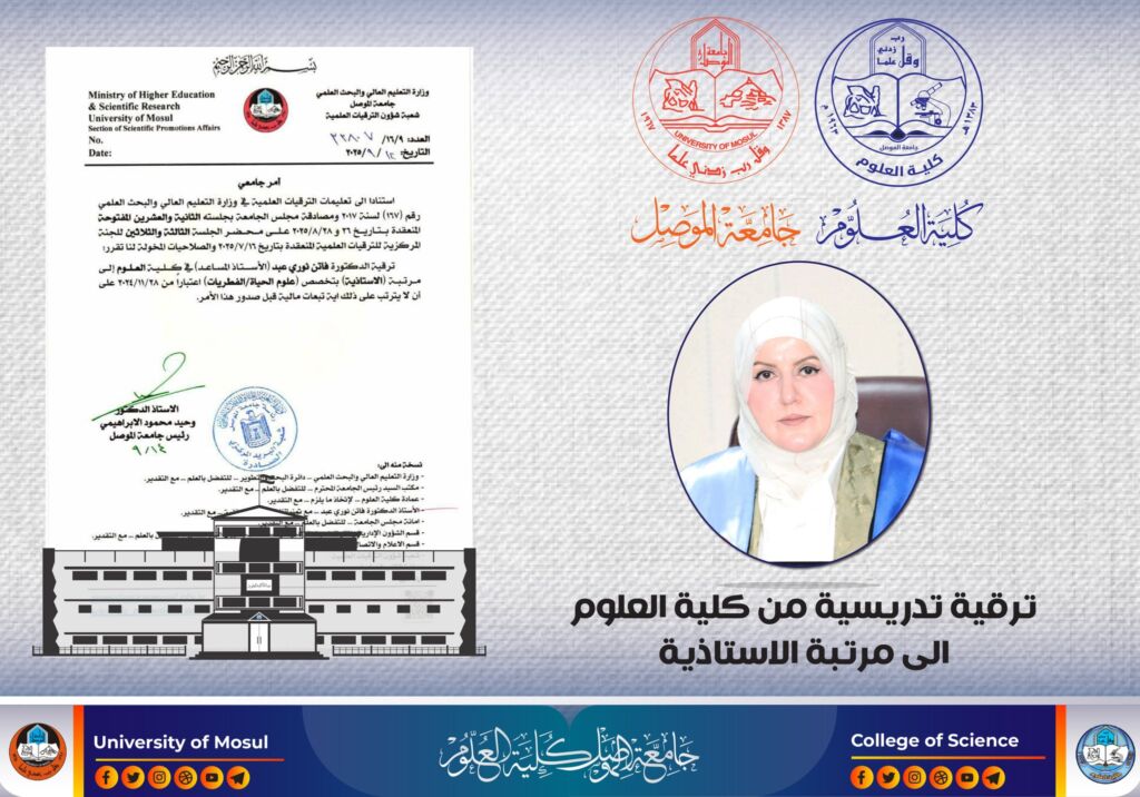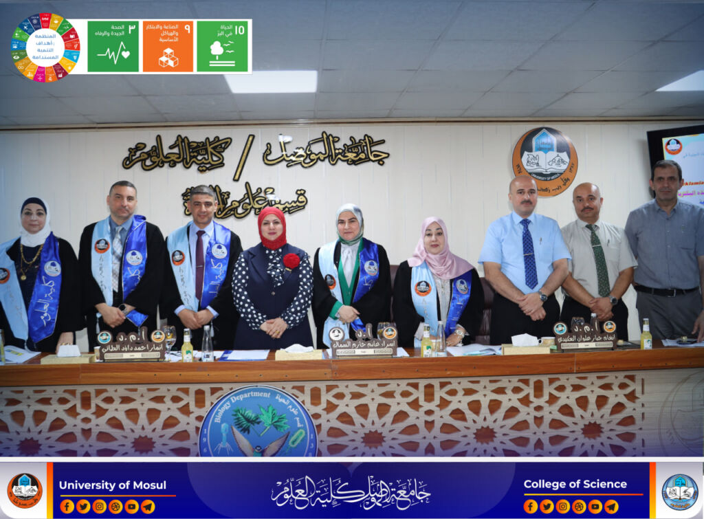 نوقشت في قسم الكيمياء بكلية العلوم ، يوم الأحد الموافق 14 أيلول 2025، رسالة الماجستير الموسومة ” تأثير وجود 4-كلورو-5,3-ثنائي ميثيل الفينول في الوضع الهلامي للمذيلات الشبيه بالديدان على استقرارها وكفاءتها في التعقيم”، للطالبة سرى طه جاسم محمد.