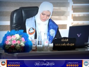حضر جانبًا من المناقشة السيدة عميد الكلية الأستاذ الدكتورة هيام عادل إبراهيم المحترمة، والسادة معاونو العميد، والسيد رئيس القسم، وعدد من تدريسيي الكلية وطلبة الدراسات العليا.