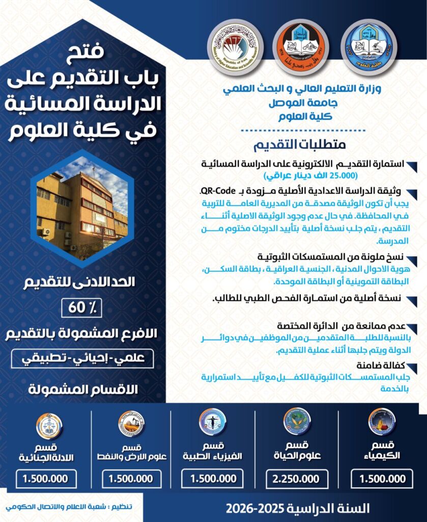 نوقشت في قسم الكيمياء بكلية العلوم / جامعة الموصل يوم الأحد الموافق 5 تشرين الأول 2025 رسالة الماجستير الموسومة ” تقييم الكاينيز المعتمد على السايكلين في مصل دم المرضى المصابين بسرطان الغُدَّة الدرقيَّة ” للطالب عبد العزيز غالب جمعة حسين.