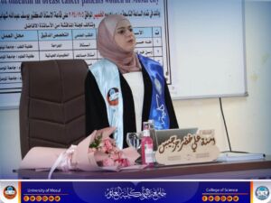 نوقشت في قسم علوم الكيمياء بكلية العلوم / جامعة الموصل رسالة الماجستير الموسومة ” تقييم دور الاومنتين في النساء المصابات بسرطان الثدي في مدينة الموصل ” يوم الخميس الموافق 5 كانون الاول 2024 حضر جانبا منها السيد رئيس قسم علوم الكيمياء المحترم وعدداً من تدريسي الكلية المحترمين .
