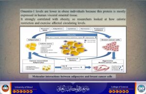 تناولت الرسالة التي تقدمت بها الطالبة (آمنة علي خضر جرجيس) تقييم دور الاومنتين في النساء المصابات بسرطان الثدي مع قياس بعض المتغيرات الكيموحيوية ذات العلاقة بالمرض وكذلك عزل وتنقية جزئية للاومنتين.