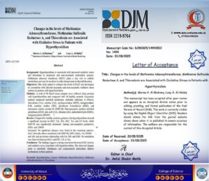 نوقشت في قسم الكيمياء بكلية العلوم / جامعة الموصل رسالة الماجستير الموسومة ” دراسة إنزيم مثيونين أدينوسيل ترانسفيريز لدى مرضى أمراض الدرقية” ، وذلك يوم الاثنين الموافق 6 تشرين الأول 2025.