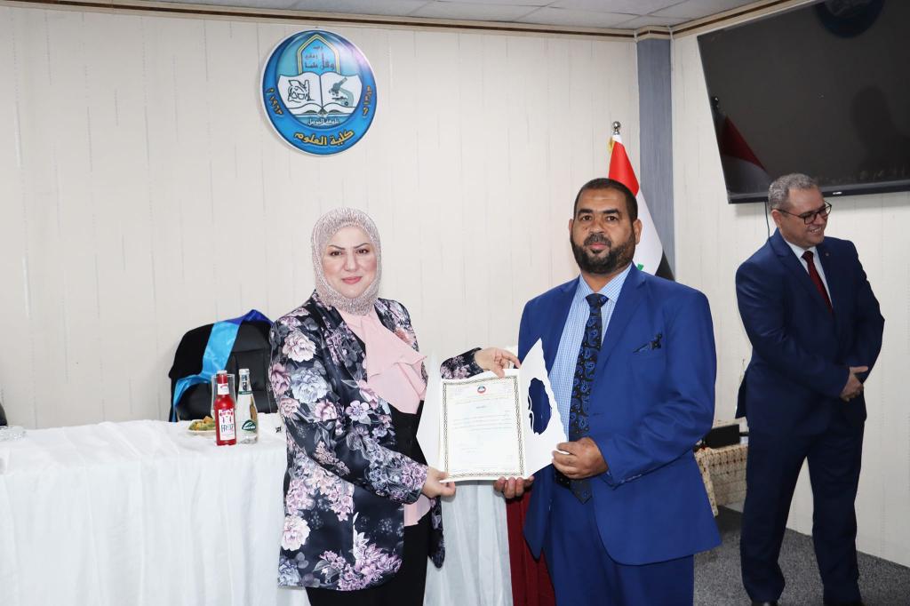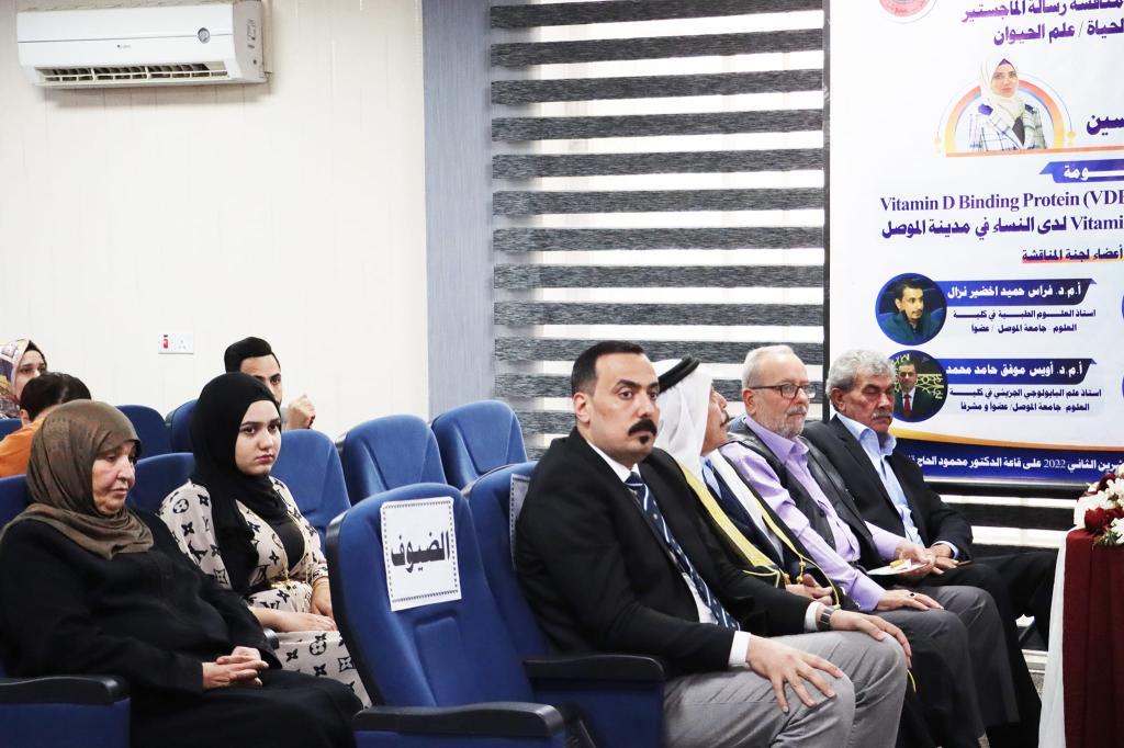 ناقش قسم علوم الحياة في كلية العلوم بجامعة الموصل يوم الخميس الموافق 10 تشرين الثاني 2022رسالة الماجستير الموسومة :” A study of the Genetic Variation of Vitamin D Binding Protein (VDBP) and its relationship with Vitamin D deficiency for women in Mosul city”حضر جانبا منها السيدة عميد الكلية الأستاذ الدكتورة هيام عادل إبراهيم والسيد رئيس القسم وعدد من تدريسي الكلية.تناولت الدراسة التي تقدمت بها الطالبة ( سماء مشرف صايل ياسين ) من فرع علم الحيوان عدد من المحاور منها ، تحديد التباين الوراثي للجين VDBP وتحديد علاقته مع النقص الحاصل في مستوى V.D لدى النساء في مدينة الموصل. تحديد الأنماط الظاهرية المختلفة للبروتين المرتبط بـ فيتامين د (VDBP) وعلاقته بالمسار الأيضي لـ VD بالإضافة الى الكشف عن الطفرات الوراثية غير المسجلة في الجين VDBP لدى المرضى في مدينة الموصل وتحديد النمط الوراثي الطافر للجين VDBP.هدفت الدراسة الى إمكانية اعتماد الطفرات في الجين VDBP كمسبب للنقص في مستوى VD واستخدامها مع المؤشرات الكيموحيوية.أظهرت النتائج أنّ حالات النقص في مستوى VD لم تعتمد على عامل معين، حيث تبين إنّ هناك عدة عوامل منها وراثية وبيئية وأظهرت النتائج وجود فروقات معنوية بمستوى المؤشرات الوراثية لدى المرضى مقارنة مع مجموعة السيطرة. كما تبين ان النمط الوراثي الطافر GG الذي يصيب جين الـ (VDBP) في الموقع (rs7041) هو الأكثر تكرارا لدى مجاميع الدراسة. كما اظهرت النتائج وجود نمط وراثي جديد تابع للجين VDBP بسبب طفرات تم تسجيلها في موقع الجينات العالمي الـ NCBI.ترأس لجنة المناقشة الاستاذ الدكتور نشأت غالب مصطفى محمد من كلية الطب البيطري وعضوية كل من الأستاذ المساعد الدكتور فراس حميد اخضير نزال و الأستاذ المساعد الدكتور رافع زيدان مخلف أحمد من كلية العلوم / جامعة تكريت وبإشراف الأستاذ المساعد الدكتور أويس موفق حامد محمد.شعبة الإعلام و العلاقات العامةالخميس 10 تشرين الثاني 2022