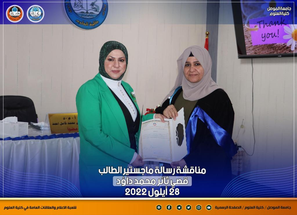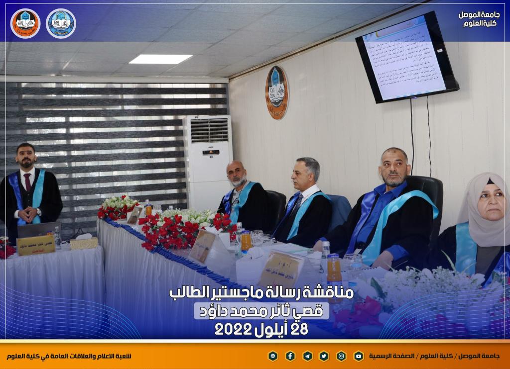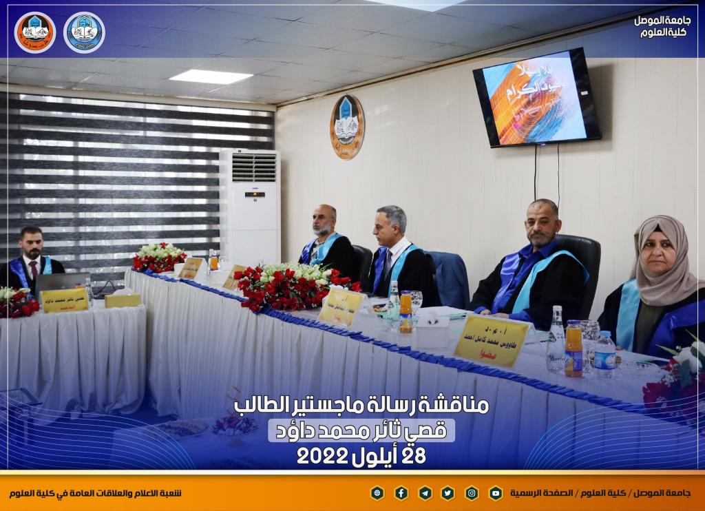 ناقشت كلية العلوم في جامعة الموصل يوم الأربعاء الموافق 28 أيلول 2022 رسالة الماجستير الموسومة ” دراسة بيئية واحيائية للمياه الجوفية في مدينة الموصل / العراق ومدى صلاحيتها للأغراض المدنية المختلفة ” حضر جانباً منها السيدة عميد الكلية الأستاذ الدكتورة هيام عادل إبراهيم والسادة معاوني العميد و السيد رئيس القسم إضافة إلى عدد من التدريسين و الطلبة.تناولت الدراسة التي تقدم بها الطالب قصي ثائر محمد داؤود من قسم علوم الحياة / فرع علم النبات عدد من المحاور منها اختيار 28 بئراً موزع عشوائياً على الجانب الأيمن والأيسر من مدينة الموصل وإجراء عدد من التحاليل الفيزيائية والكيميائية والاحيائية ، وتطبيق دليل نوعية المياه لغرض الشرب والري ومعيشة الأحياء المائية اعتمادا على المحددات القياسية للمياه العراقية والعالمية.هدفت الدراسة إلى معرفة مدى ملائمة مياه الآبار في مدينة الموصل للاستخدامات المدنية المختلفة.ترأس لجنة المناقشة الأستاذ الدكتور محمود إسماعيل محمد و عضوية كلاً من أ.م. د. طاووس محمد كامل و أ.م.د. عبدالقادر غبش سباك و عضوية وإشراف أ.م.د. عبدالمنعم محمد علي كنه .قدمت السيدة عميد الكلية كتاب شكر وتقدير للأستاذ المساعد الدكتورة طاووس محمد كامل / كلية التربية للعلوم الصرفة / جامعة كركوك ؛ لتحملها عناء السفر وحضورها المناقشة.شعبة الإعلام والعلاقات العامةالأربعاء 28 أيلول 2022