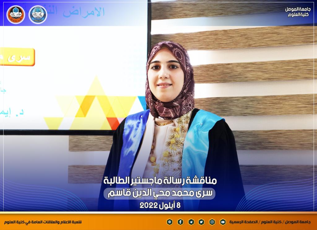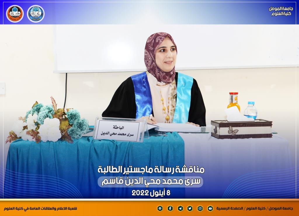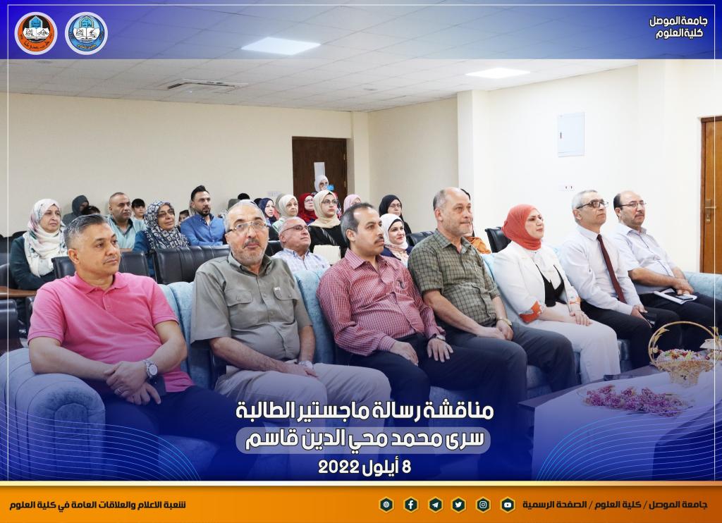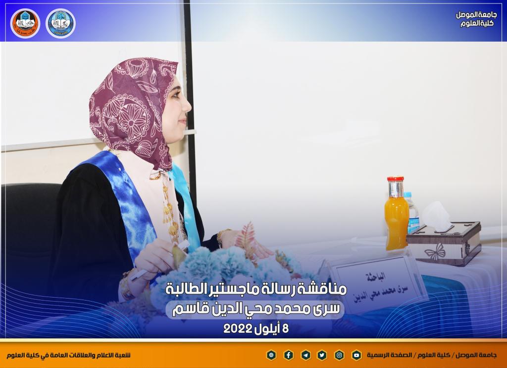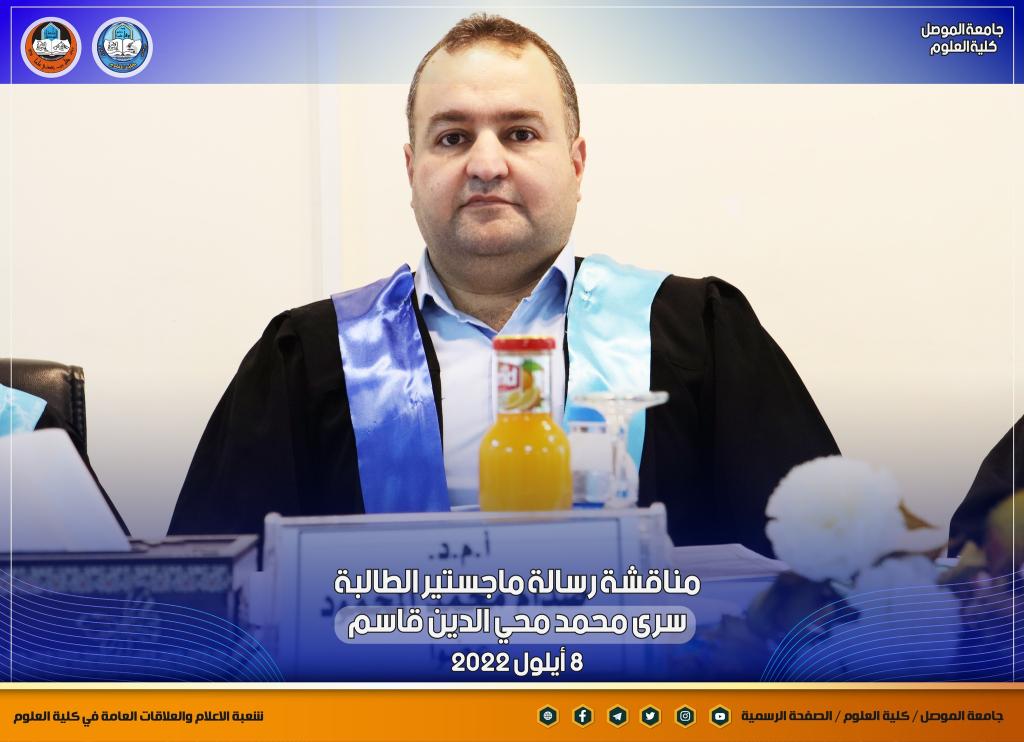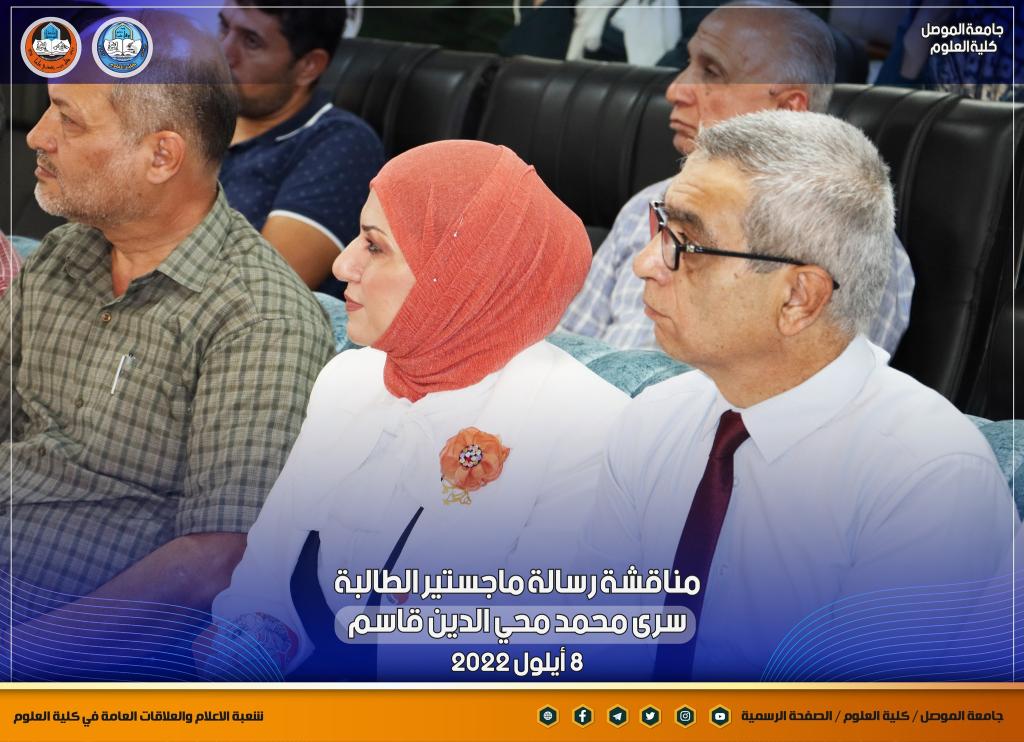 ناقشت كلية العلوم في جامعة الموصل يوم الخميس الموافق 8 أيلول 2022 رسالة الماجستير الموسومة ” دراسة كهروكيميائية لتطوير الأقطاب لتقدير بعض أدوية الأمراض النفسية كمتحسسات حيوية ومعاملتها مع بعض المواد النانوية ” حضر جانباً منها السيدة عميد الكلية الأستاذ الدكتورة هيام عادل إبراهيم والسيد المعاون العلمي والسيد رئيس قسم الكيمياء وعدد من تدريسي وطلبة القسم .تناولت الدراسة التي تقدمت بها الطالبة ( سرى محمد محي الدين ملا حسن) من قسم الكيمياء / فرع الكيمياء الفيزياوية دراسة ثلاثة أجزاء و على النحو الآتي :الجزء الأول : تضمن قياس دراسة السلوك الفولتامتري للـ (TRF)على سطح قطب (BGrE) باستخدام تقنية الفولتامتري الحلقي (CV), تم تطوير المتحسس من خلال البلمرة الكهروكيميائية للـ(TH) والحصول على أفضل متحسس لقياس (TRF) PTH /GrE,تم تعزيز المتحسس أعلاه من خلال وضع طبقة من أنابيب الكاربون النانوية متعددة الجدران MWCNTS لزيادة كفاءة القطب , كما تم أجراء تطبيقات عملية للقطب المحور (PTH/ MWCNTs/GrE) على المستحضرات الصيدلانية ,وتم تشخيص مواصفات السطح للمتحسس باستخدام المجهر الماسح الإلكتروني (SEM)..الجزء الثاني : تضمن قياس دراسة السلوك الفولتامتري (CAZ) على سطح قطب (BGrE) باستخدام تقنية الفولتامتري الحلقي (CV), تم تطوير المتحسس من خلال البلمرة الكهروكيميائية للـ (L-Serine) والحصول على أفضل متحسس لقياس (CAZ) (PSer/GrE),تم تعزيز المتحسس أعلاه من خلال وضع طبقة من أنابيب الكاربون النانوية متعددة الجدران MWCNTS لزيادة كفاءة القطب المحور , وكذلك تم أجراء تطبيقات عملية للقطب المحور (PSer / MWCNTs/GrE) على المستحضرات الصيدلانية ,تم تشخيص مواصفات السطح للمتحسس باستخدام المجهر الماسح الإلكتروني (SEM)..الجزء الثالث : فتضمن قياس دراسة السلوك الفولتامتري للـ(PRX),على سطح قطب (BGrE) باستخدام تقنية الفولتامتري الحلقي (CV), تم تطوير المتحسس من خلال تحضير متحسس حيوي معتمد على DNA لتقدير PRX والحصول على أفضل متحسس لقياس (PRX) (DNA/GrE), تم تعزيز المتحسس أعلاه من خلال وضع طبقة من جزيئات ثاني أوكسيد التيتانيوم النانوية TiO2NPS لزيادة كفاءة القطب المحور ,وكذلك تم أجراء تطبيقات عملية للقطب المحور ((DNA/TiO2NPS /GrE) على المستحضرات الصيدلانية ,وتم تشخيص مواصفات السطح للمتحسس باستخدام المجهر الماسح الإلكتروني (SEM)..ترأس لجنة المناقشة الأستاذ المساعد الدكتورة زاهدة أحمد نجم الجريسي و عضوية الأستاذ المساعد الدكتور صدام محمد أحمد المحمود والأستاذ المساعد الدكتور عمر عادل شريف الحيالي و بعضوية وإشراف المدرس الدكتورة إيمان عبد المنعم محمد صالح الجوادي .قدمت السيدة العميد كتاب شكر وتقدير للدكتور صدام محمد أحمد المحمود من كلية التربية للبنات / جامعة تكريت ؛ لتكبده عناء السفر وجهوده المبذولة في مناقشة الطالبة.شعبة الإعلام والعلاقات العامةالخميس 8 أيلول 2022