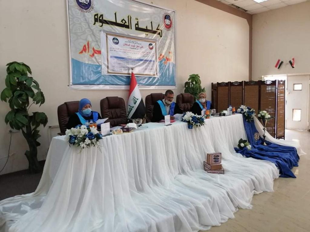 بحضور السيدة عميد كلية العلوم الأستاذ المساعد الدكتورة هيام عادل إبراهيم الطائي و إشراف الدكتورة منى حسين علي جانكير جرت يوم الأحد الموافق 2020/9/6 مناقشة رسالة الماجستير للطالب علي معن أيوب السلطان من قسم علوم الحياة و الموسومة : ” دراسة نظام التوازن بين بعض المؤكسدات و مضادات الأكسدة الإنزيمية و غير الإنزيمية لدى مهن متباينة ضمن مدينة الموصل و ضواحيها “هدفت الدراسة الى تحديد تراكيز عدد من الملوثات الكيميائية الصناعية في مصل دم العاملين في مهن مختلفة في مدينة الموصل وضواحيها، لبيان مدى تأثير تلك الملوثات في مكونات الدم ومستوى التوازن بين المؤكسدات ومضادات الأكسدة الإنزيمية وغير الإنزيمية. أظهرت النتائج في هذه الدراسة تراكم حيوي للعناصر الثقيلة المدروسة في مصل دم العاملين، إذ أظهرت إرتفاعاً معنوياً في تركيز العناصر الثقيلة المتراكمة خلال فترتي التعرض (11-20) و(أكثر من 20) سنة في جميع المجاميع المدروسة. دراسة تأثير هذه العناصر الثقيلة المدروسة في مكونات الدم للعاملين المعرضين لهذه الملوثات خلال عملهم اليومي ولفترات تعرض سنوية مختلفة و تشمل كل من تركيز هيموكلوبين الدم (Hb) وحجم كريات الدم المرصوصة (PCV). ودراسة تأثير هذه الملوثات في تركيز المالون ثنائي الألديهايد (MDA) الذي يمثل أحد النواتج النهائية للأكسدة الفوقية للدهن كما يعد مؤشراً على الكرب التأكسدي. وكذلك تأثيرها على فعالية مضاد الأكسدة الإنزيمي الكلوتاثايون بيروكسديز (GSH-Px) في مصل دم العاملين، كما شملت دراسة تأثير هذه الملوثات في تراكيز عدد من مضادات الأكسدة غير الإنزيمية في مصل دم العاملين في مهن مختلفة ولفترات تعرض سنوية مختلفة، وتشمل كل من الألبومين، الكرياتينين، حامض اليوريك، البيليروبين الكلي والمقترن والكالسيوم .