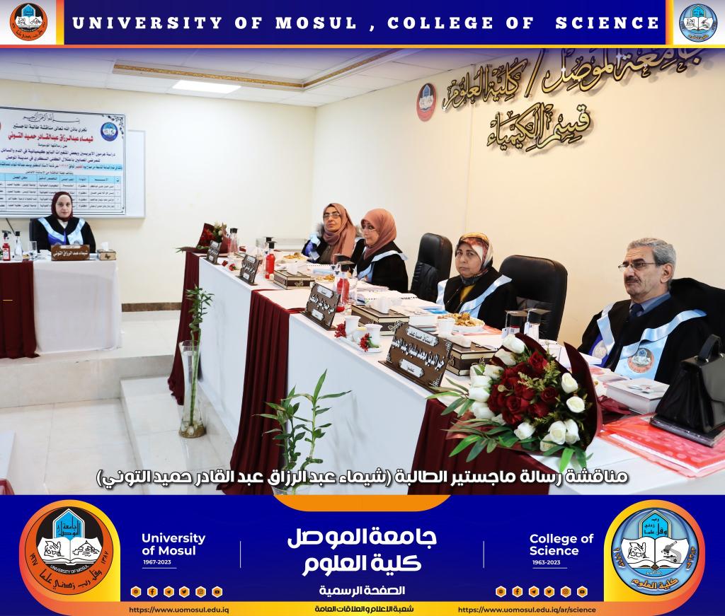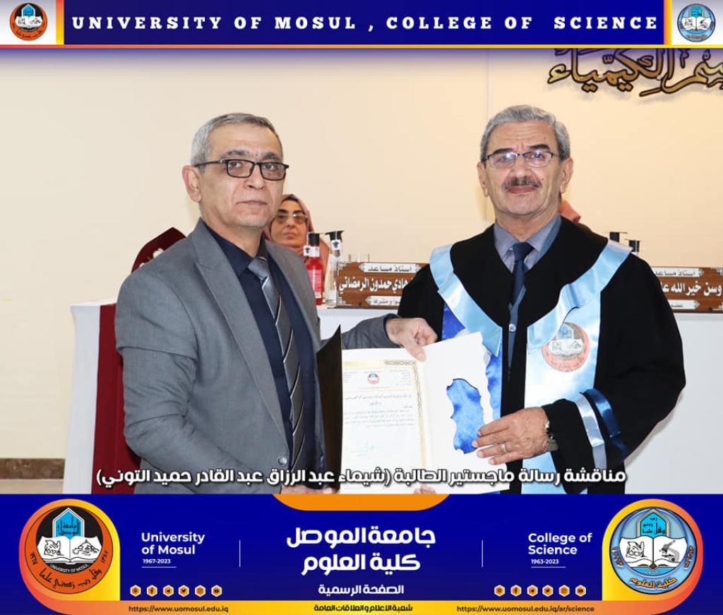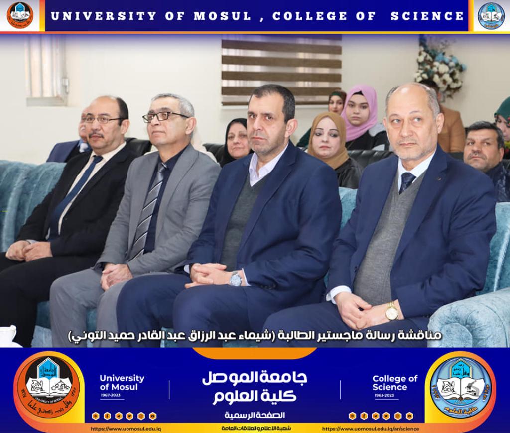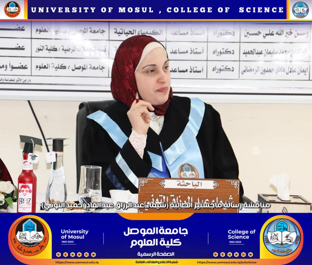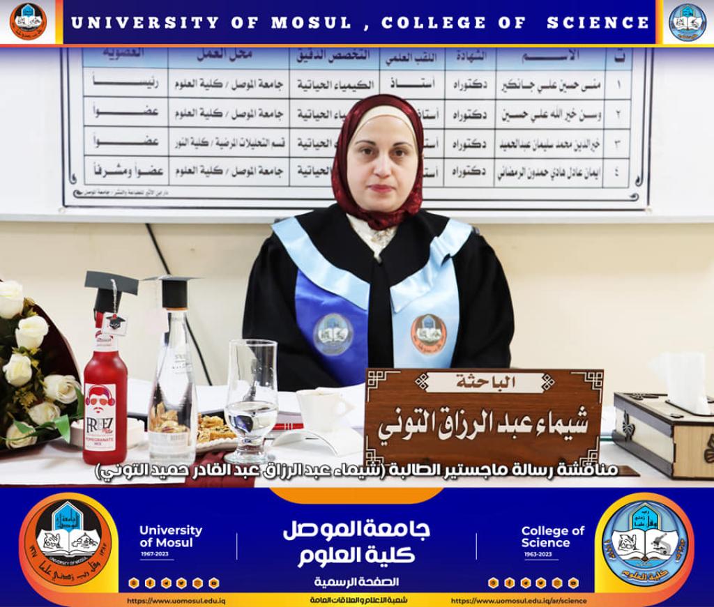 ناقش قسم الكيمياء في كلية العلوم بجامعة الموصل رسالة الماجستير الموسومة ” دراسة هرمون الايريسين وبعض المتغيرات البايوكيميائية في الدم والسائل العرقي للمرضى المصابين باعتلال الكلى السكري في مدينة الموصل ” يوم الخميس الموافق 2 شباط 2023.حضر جانبا منها السادة معاوني العميد للشؤون العلمية و الادارية و السيد رئيس القسم و عدد من تدريسي الكلية.تناولت الرسالة التي تقدمت بها الطالبة (شيماء عبد الرزاق عبد القادر التوني) من فرع الكيمياء الحياتية جمع نماذج الدم والسائل العرقي والبول من الأشخاص المصابين بداء السكري من النوع الثاني والاشخاص المصابين باعتلال الكلى السكري فضلاً عن جمع النماذج من الاصحاء(كمجموعة سيطرة ). وتم قياس هرمون الايريسين والمتغيرات الكيموحيوية التي لها علاقة باعتلال الكلى السكري مثل السي بثببتايد،الكلوكوز،مقاومة الانسولين، و غيرها.أظهرت النتائج وجود انخفاض معنوي في مستوى هرمون الايريسين في مصل الدم والسائل العرقي للمصابين بداء السكري مقارنة بالأصحاء وكذلك انخفاض أكثر في المصابين باعتلال الكلى السكري مقارنة مع المصابين بداء السكري وفي هذه اشارة الى وجود ارتباط معنوي وثيق بين هرمون الايريسين ومراحل اعتلال الكلى السكري فكلما زاد تطور حالة اعتلال الكلى السكري كلما انخفض مستواه.كما لوحظ ارتفاع مستويات الاكسدة في مصل الدم والسائل العرقي عند الاشخاص المصابين بداء السكري مقارنة بالأصحاء وارتفاع أكثر في المصابين باعتلال الكلى السكري مقارنة بالأشخاص المصابين بالسكري.ترأس لجنة المناقشة الأستاذ الدكتورة منى حسين علي جانكير وعضوية كل من الأستاذ المساعد الدكتورة وسن خير الله علي و الأستاذ المساعد الدكتور خير الدين محمد سليمان من كلية النور الجامعة ، وبإشراف وعضوية الأستاذ المساعد الدكتورة إيمان عادل هادي حمدون.شعبة الإعلام والعلاقات العامةالخميس 2 شباط 2023
