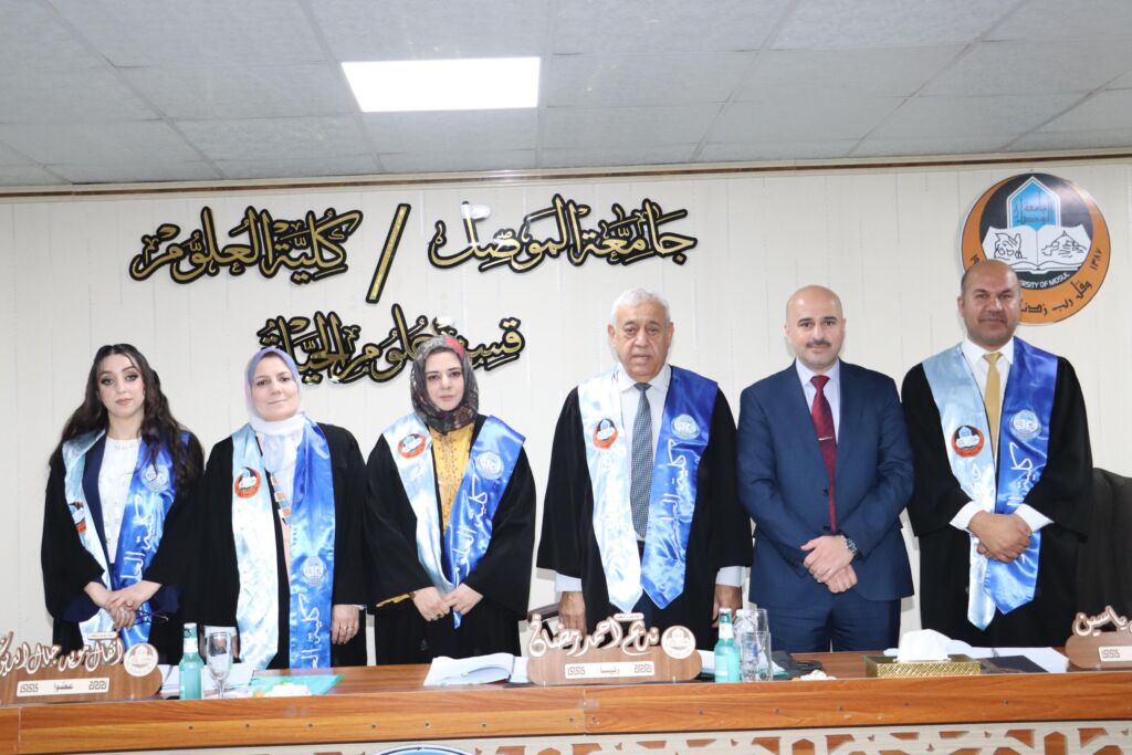 ترأس لجنة المناقشة الأستاذ الدكتور زيد عبدالوهاب ملك خليل ، وعضوية كل من الأستاذ المساعد الدكتور صفوان فتحي حميد صالح ، والمدرس الدكتور أحمد نذير ذنون أحمد ، وعضوية وإشراف الأستاذ المساعد الدكتور سالم حامد حسين مرعي .