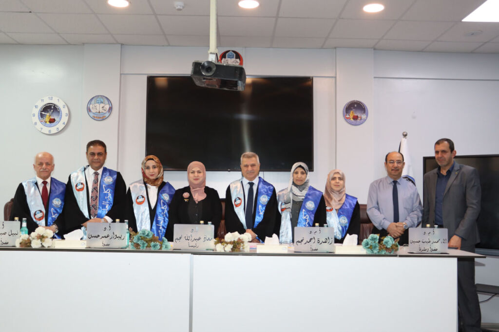 ترأس لجنة المناقشة الأستاذ الدكتورة زهراء محمد علي أحمد وعضوية كل من الأستاذ المساعد الدكتورة وسن خير الله علي حسن والمدرس الدكتورة رنا فاضل جاسم محمد وبأشراف وعضوية الأستاذ المساعد الدكتورة أمل طه ياسين رملة .