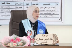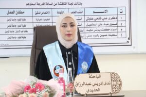 ترأس لجنة المناقشة الأستاذ الدكتورة ذكرى علي فتحي علوش وعضوية كل من الأستاذ الدكتور لؤي عبد علي إسماعيل والأستاذ المساعد الدكتورة إسراء حمت يونس مجيد وبإشراف وعضوية الأستاذ المساعد الدكتورة سكينة حسين رشيد علي .