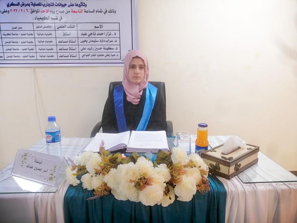 ناقشت كلية العلوم في جامعة الموصل صباح يوم الأحد الموافق 6 شباط 2022 رسالة الماجستير الموسومة ” فصل ودراسة المركبات الفعالة المستخلصة من اوراق نبات الرند Laurus Nobilis وتأثيرها على حيوانات التجارب المصابة بمرض السكري ” حضر جانباً منها السيد المساعد العلمي لرئيس الجامعة الأستاذ الدكتور منير سالم طه و السيدة عميد الكلية الأستاذ المساعد الدكتورة هيام عادل إبراهيم وعدداً من تدريسي القسم .تناولت الرسالة التي تقدمت بها الطالبة ( أسر احسان عبدالله الأفندي ) من قسم الكيمياء عزل المركبات الفعالة من نبات الرند واستخلاصها ودراسة تأثيرها على الجرذان المصابة بداء السكري المستحدث بمادة الالوكسان وتم استخلاص الزيوت الفلافونويدات والتانينات في جهاز الاستخلاص في مراحل متتالية وباستخدام عدة مذيبات.استخدمت الدراسة 168 جرذا ذكرا بالغا أبيض اللون قسمت عشوائيا وبمعدل 6 جرذان لكل مجموعة لإجراء سبعة تجارب بينت تأثير المستخلصات الزيتية والمستخلص المائي الخام البارد والمغلي والراسب البروتيني البارد والمغلي لنبات الرند على بعض المتغيرات الكيمو حيوية المرتبطة بداء السكري فضلا عن تأثيرها على فعالية انزيمات الكبد .ترأس لجنة المناقشة أ.د. نزار أحمد ناجي وعضوية كلاً من أ.م.د. سراب داؤد سليمان وأ.م.د. سكينة حسين رشيد واشراف أ.م.د. صبا زكي العباجي .قدمت السيدة عميد الكلية كتاب شكر و تقدير للأستاذ الدكتور نزار أحمد ناجي من كلية العلوم / جامعة تكريت ، لتكبده عناء لسفر و ترأسه لجنة المناقشة .