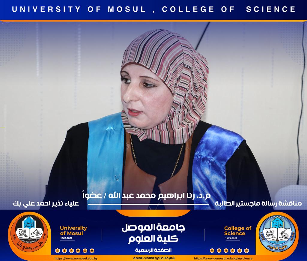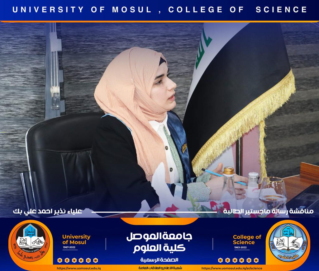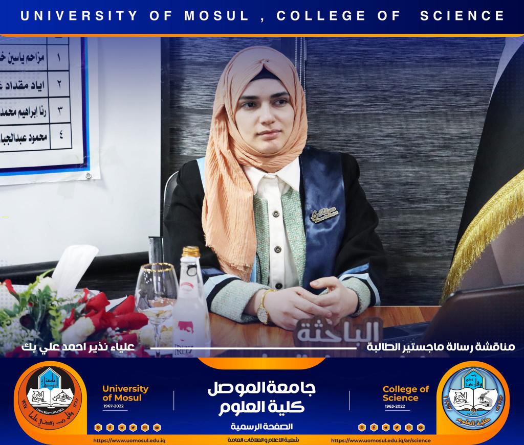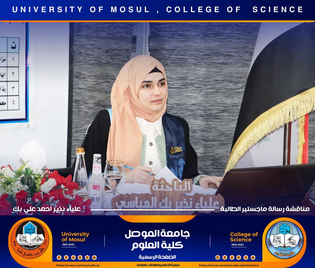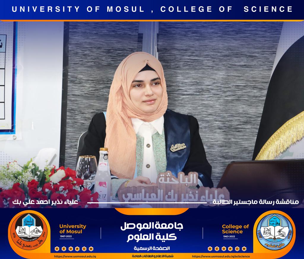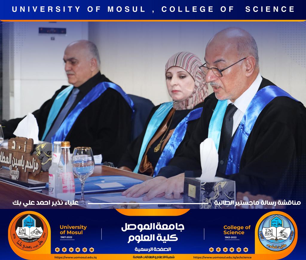 ناقش قسم علوم الحياة في كلية العلوم بجامعة الموصل رسالة الماجستير الموسومة ” قياس مستوى بعض المعايير المناعية لتقييم فعالية الجهاز المناعي للأصحاء في محافظة نينوى ” يوم الثلاثاء الموافق 13 كانون الأول 2022.حضر جانباً منها السيدة عميد الكلية الأستاذ الدكتورة هيام عادل إبراهيم والسادة معاوني العميد والسيد رئيس القسم وعدد من تدريسي القسم.تناولت الدراسة التي تقدمت بها الطالبة ( علياء نذير أحمد بك العباسي ) فرع الأحياء المجهرية عدد من المحاور منها :دراسة تأثير فيتامين D وفيتامين C وكل من الزنك والسلينيوم على العوامل المناعية المدروسة ، و دراسة تأثير بعض العادات والسلوك اليومي للأشخاص قيد الدراسة على بعض العوامل المناعية ، اضافة الى تقييم تأثير كل من التعرض للشمس والوزن الزائد على العوامل المناعية المدروسة ، و دراسة تأثير نوع الغذاء وكمية شرب الماء للأشخاص قيد الدراسة على بعض العوامل المناعية في الجسم.هدفت الدراسة الى :1- تحديد تأثير بعض الفيتامينات والعناصر على إنتاج الأجسام المضادة والخلايا المناعية وفعالية المتمم في الجسم.2- إيجاد العلاقة بين كفاءة الجهاز المناعي وكل من النمط الغذائي وبعض السلوك والعادات اليومية.3- التحري عن العوامل التي تساعد على تنشيط وتقوية الجهاز المناعي البشري.4- تحديد تأثير الإفراط في تناول اللحوم والسكريات والرياضة وتناول المكملات الغذائية على بعض العوامل المناعية .أوضحت النتائج وجود عوامل مؤثرة سلبا على الجهاز المناعي وخاصة على كل من فعالة المتمم و IgM وبدرجة كبيرة ، كما كان هناك مؤثرات أخرى على صحة الجهاز المناعي شملت طبيعة الغذاء والصحة العامة والسلوك اليومي.ترأس لجنة المناقشة الأستاذ الدكتور مزاحم ياسين خليل العطار، وعضوية كل من الأستاذ المساعد الدكتور أياد مقداد غيدان مبارك من جامعة تكريت ، والمدرس الدكتورة رنا إبراهيم محمد عبدالله وبإشراف الأستاذ الدكتور محمود عبدالجبار حسين الطوبجي.شعبة الإعلام والعلاقات العامةالثلاثاء 13 كانون الأول 2022