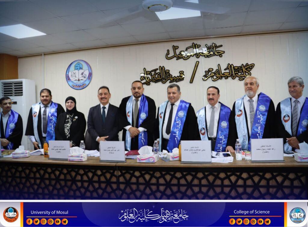 ترأس لجنة المناقشة الاستاذ الدكتور محسن أيوب عيسى وعضوية كل من الأستاذ المساعد الدكتور شاكر غازي جرجيس والمدرس الدكتورة سحر سالم بطرس وبأشراف وعضوية الاستاذ المساعد الدكتورة غادة عبد الرزاق محمد.