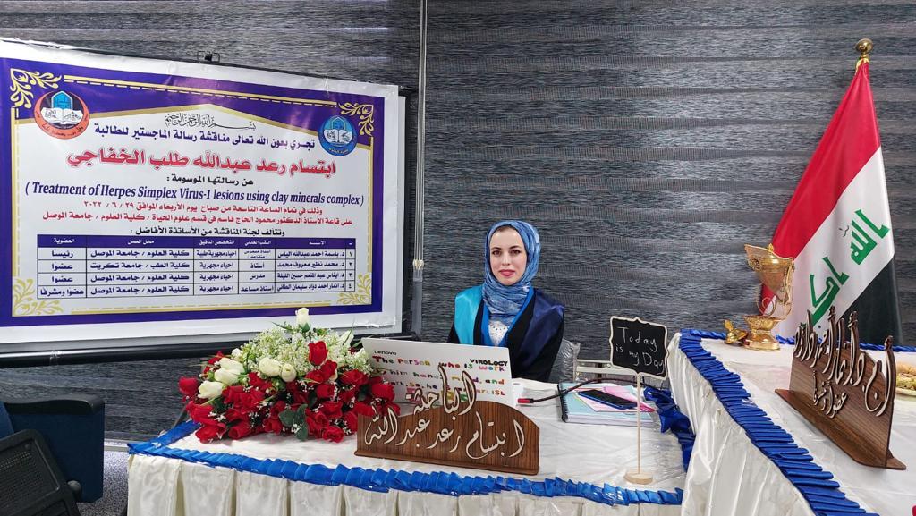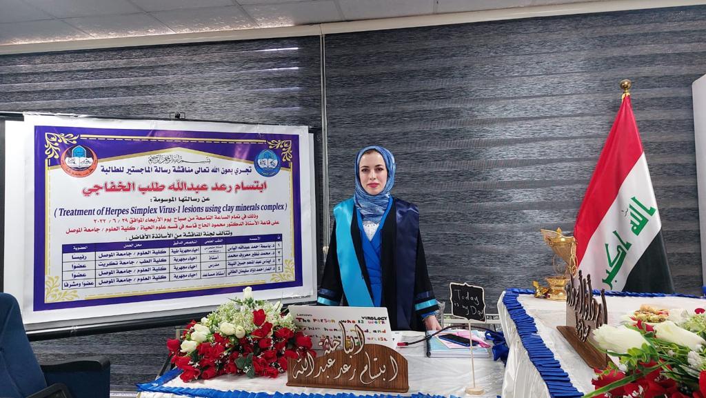 رسالة ماجستير تناقش (Treatment of Herpes Simplex Virus-1 lesions using clay minerals complex)