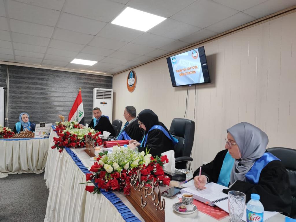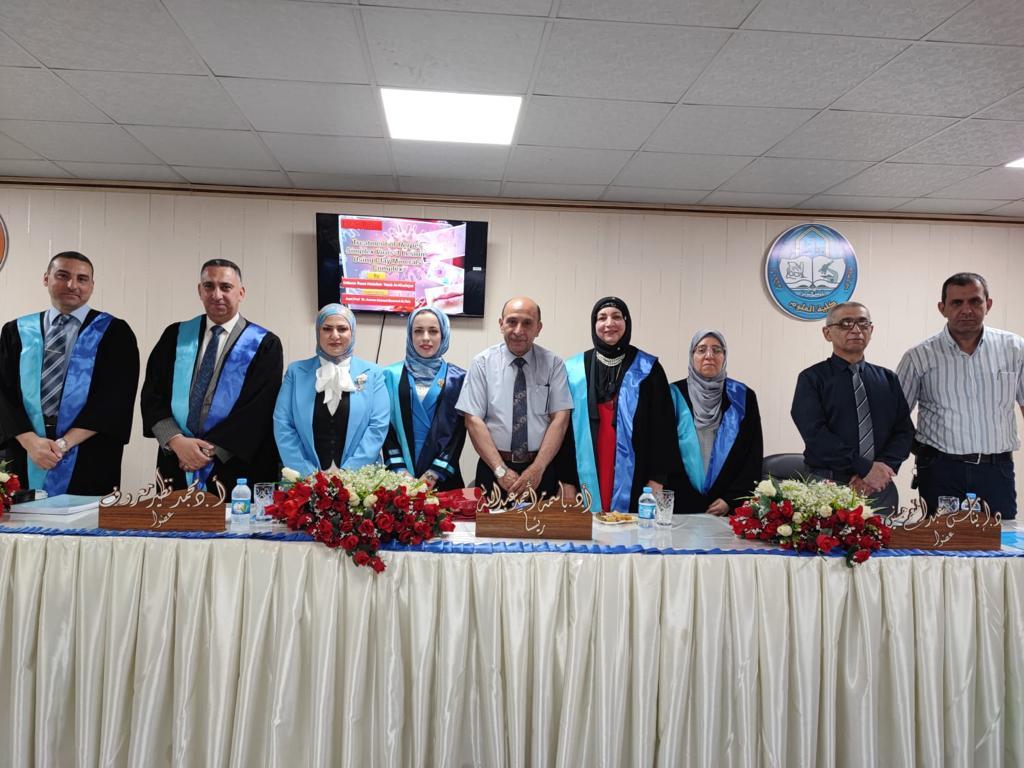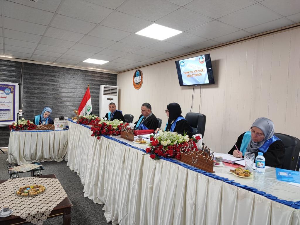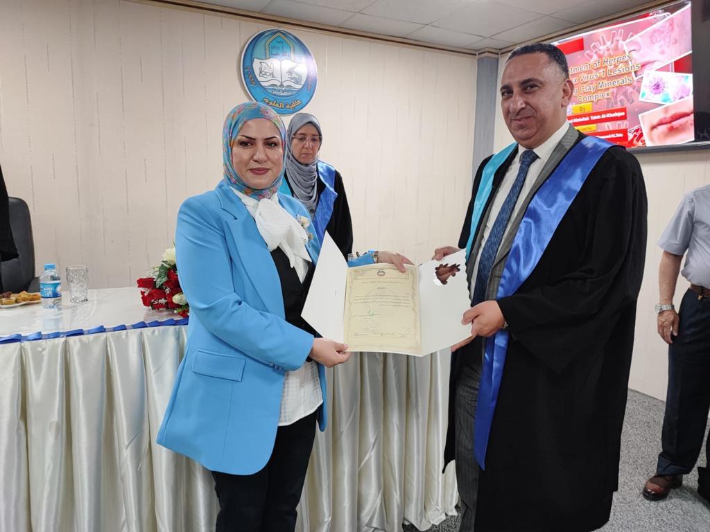 ناقشت كلية العلوم في جامعة الموصل يوم الأربعاء الموافق 29 حزيران 2022 رسالة الماجستير الموسومة :( Treatment of Herpes Simplex Virus-1 lesions using clay minerals complex )حضر جانباً منها السيدة عميد الكلية الأستاذ الدكتورة هيام عادل أبراهيم والسادة معاوني العميد وعدداً من تدريسيي القسم .تناولت الدراسة التي تقدمت بها الطالبة ( ابتسام رعد عبدالله الخفاجي ) من قسم علوم الحياة / فرع الأحياء المجهرية خمسة محاور :المحور الأول : عزل وتشخيص اصابات HSV-1 باستخدام تقنية ELISA و PCR ومقارنة النتائج .المحور الثاني : زرع العينات الموجبة في اختبار PCR في خلايا Vero cells وملاحظة تأثير فيروس HSV-1 عليها .المحور الثالث : دراسة تأثير اربع عينات من المعادن الطينية من محافظتي الأنبار والموصل .المحور الرابع: دراسة حيوية خلايا Vero cells بتقنية XTT assay حيث تم استخدام هذه التقنية لأول مرة في الموصل من خلال هذه الدراسة .المحور الخامس : دراسة التعبير الجيني للخلايا وفيروس HSV-1 قبل وبعد اضافة المعادن الطينية لملاحظة تأثيرها على جين معين .هدفت الدراسة إلى:1- عزل فيروس HSV-1 من اصابات جلدية مختلفة.2- تشخيص الاصابة باستخدام تقنيتي ELISA و PCR..3- اختيار العينات الموجبة في فحص PCR لزرعها في وسط الخلايا.4- تقدير فعالية معلقات المعادن الطينية ضد الفيروسات.5- تقييم حيوية الخلايا باستخدام تقنية XTT assay. .6- التقدير الجزيئي لفعالية المعادن الطينية على الفيروس وخلايا الوسط باستخدام تقنية real time PCR .ترأس لجنة المناقشة الأستاذ الدكتورة باسمة أحمد عبدالله وعضوية كل من الأستاذ الدكتور محمد نظير معروف والمدرس الدكتورة ايناس عبدالمنعم حسين وبعضوية وإشراف الأستاذ المساعد الدكتور أنمار أحمد داؤود الطائي .قدمت السيدة عميد الكلية كتاب شكر إلى الأستاذ الدكتور محمد نظير معروف / كلية الطب / جامعة تكريت ؛ لتحمله عناء السفر ولجهوده في مناقشة الطالبة .