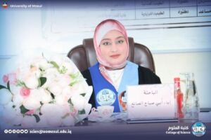 تقدّمت بالرسالة الطالبة إباء أُبي صباح إبراهيم الصائغ من فرع الكيمياء الصناعية، حيث تضمّن البحث تحضير متراكب هيدروجيل حيوي مبتكر وصديق للبيئة معزّز بمادتي الكايتوسان وقشور بذور زهرة دوّار الشمس، بهدف استخدامه في معالجة المياه الملوّثة وإزالة الملوثات الذائبة بكفاءة عالية.