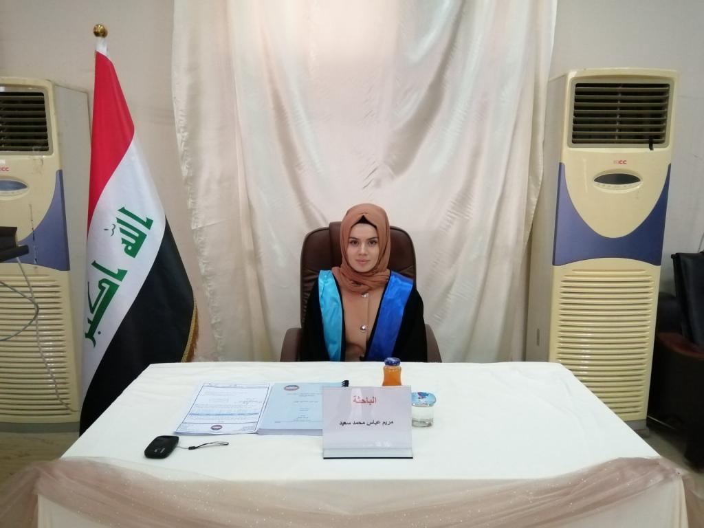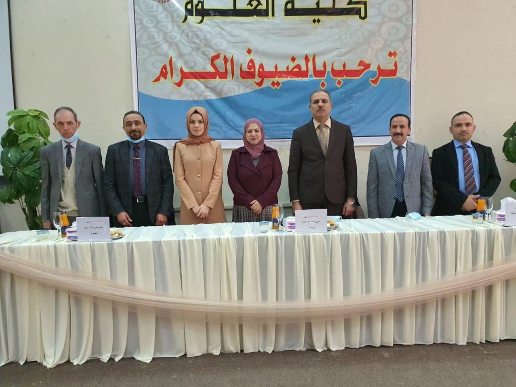 - أ.م. د رافع يونس جاسم محمد علي عضواً3.م. د ادريس عيدان غدير سليمان عضواً4.أ.د ئوميد غريب عبدالله سعيد مشرفاوقد قدمت السيدة عميد الكلية كتاب شكر وتقدير الى الاستاذ المساعد الدكتور رافع يونس جاسم من كلية العلوم / جامعة تكريت ؛ لتكبده عناء السفر ومشاركته مناقشة الطالبة.