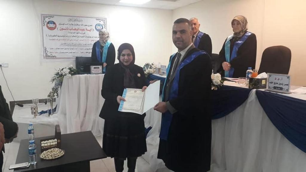جرت مناقشة رسالة ماجستير في رحاب كلية العلوم/قسم الكيمياء اليوم الخميس الموافق ٤-٢-٢٠٢١ للطالبة( آية عبد الوهاب ذنون) الموسومة” تحضير عدد من بوليمرات الايميدازول المتعاقبة ودراسة توصيليتها الكهربائية ” بحضور السيدة عميد كلية العلوم الاستاذ المساعد الدكتور هيام عادل الطائي والمعاونين العلمي و الإداري، تضمنت الدراسة عده محاور
