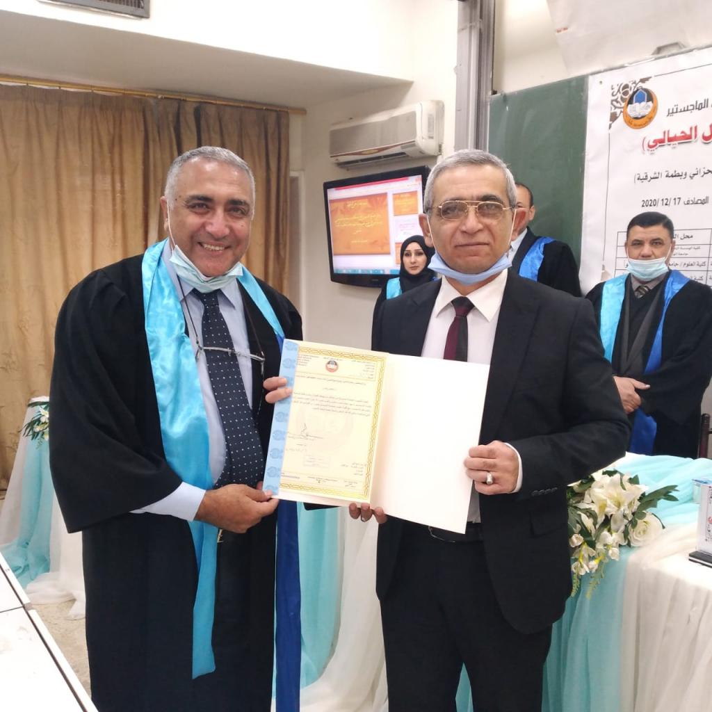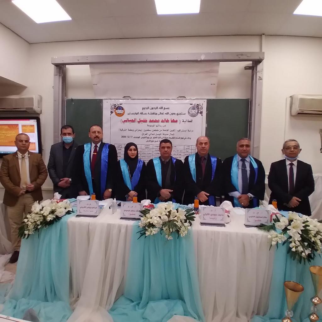 ناقشت كلية العلوم في جامعة الموصل صباح اليوم الخميس الموافق ٢٠٢٠/١٢/١٧ رسالة الماجستير الموسومة (( دراسة أوستراكودا تكوين الفتحة من مقطعين سطحيين – بحزاني وبطمة الشرقية- ، شمال مدينة الموصل / شمالي العراق )) ، حضر السيدين معاوني العميد للشؤون العلمية و الإدارية جانباً منها .تضمنت الرسالة التي تقدمت بها الطالبة ( مها خالد محمد خليل الحيالي ) دراسة مايكروباليونتولوجية (تشخيصية و تصنيفية) لأنواع متحجرات الأوستراكودا من تتابعات تكوين فتحة من عمر ( المايوسين الأوسط) من مقطعين طباقيين في محافظة نينوى شمال العراق و هما (مقطع بحزاني) شمال شرق مدينة الموصل و (مقطع بطمة الشرقية) شمال غرب مدينة الموصل. وكذلك تضمنت الرسالة, دراسة الطباقية الصخرية والطباقية الحياتية و البيئة القديمة و الجغرافية القديمة و طبيعة الاتصالات البحرية القديمة في فترة المايوسين الاوسط ( ضمن مناطق الدراسة) من خلال استخدام التطبيقات المتعلقة بمتحجرات الاوستراكودا .وقد تألفت لجنة المناقشة من كلا من :أ.د. ماجد مجدي المتولي ….. رئيسا .أ.م.د. عبدالله سلطان شهاب الجبوري……. عضوا .أ.م.د. سلام إسماعيل مرهون الدليمي…… عضوا .د. إبراهيم يونس أحمد الشريفي …..عضوا ومشرفا .و قد قدم السيد معاون العميد كتاب شكر وتقدير من عمادة كلية متمثلة بالدكتورة هيام عادل الطائي عميد الكلية للدكتور سلام إسماعيل الدليمي من جامعة بغداد لتكبده عناء السفر وحضوره مناقشة الطالبة .