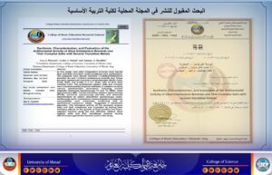 نوقشت في قسم الكيمياء بكلية العلوم/جامعة الموصل، يوم الاثنين الموافق 8 أيلول 2025، رسالة الماجستير الموسومة ” تحضير وتشخيص ودراسة نظرية لعدد من الأملاح العضوية المنصهرة للإيميدازول وأملاحها المعقدة مع عدد من العناصر الانتقالية وغير الانتقالية”، والتي تقدمت بها الطالبة آية علي حسين علي من قسم الكيمياء.