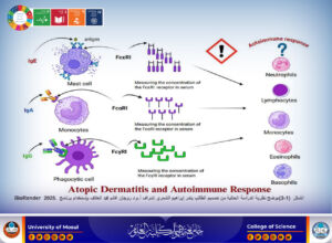 هدفت الدراسة إلى تقييم المؤشرات المناعية للمستقبلات (FCεRI, FCαRI, FCγRI) المصممة خصيصًا لهذه الدراسة، والتي كشفت عن دورها المحوري في تكوين استجابات مناعية ذاتية متجددة ومزمنة لدى مرضى الأكزيما. كما بيّنت النتائج أن المستقبلات المناعية FCεRI وFCαRI سجلت تراكيز مرتفعة معنويًا لدى المرضى مقارنة بمجموعة السيطرة، مع إظهار تأثيرات إحصائية متنوعة على خلايا الدم البيض. وأوضحت الدراسة أن وجود هذه المستقبلات بشكل حر في مصل الدم يُعد سببًا رئيسًا في نشوء إصابات مناعية مزمنة، فضلًا عن تأثير الطفرات في جين FLG المسؤول عن إنتاج بروتين الفيلاجرين الضروري لصحة الجلد.