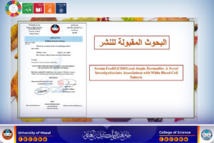 نوقشت في قسم علوم الحياة بكلية العلوم بجامعة الموصل، يوم الأحد الموافق 7 أيلول 2025، رسالة الماجستير الموسومة ” تطور الاستجابة المناعية الذاتية ضد IgE وعلاقتها بتحفيز السايتوكينات الالتهابية لدى مرضى التهاب الجلد التأتبي”، والتي تقدم بها الطالب بندر إبراهيم العايف الشمري من فرع علم الأحياء المجهرية.