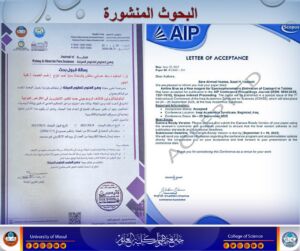 نوقشت في قسم الكيمياء بكلية العلوم بجامعة الموصل، يوم الإثنين الموافق 8 أيلول 2025، رسالة الماجستير الموسومة: “التقدير الطيفي للكابتوبريل في الأقراص الدوائية”، والتي تقدمت بها الطالبة سارة أحمد هزاع إسماعيل من قسم الكيمياء.