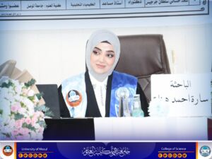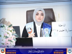 نوقشت في قسم الكيمياء بكلية العلوم بجامعة الموصل، يوم الإثنين الموافق 8 أيلول 2025، رسالة الماجستير الموسومة: “التقدير الطيفي للكابتوبريل في الأقراص الدوائية”، والتي تقدمت بها الطالبة سارة أحمد هزاع إسماعيل من قسم الكيمياء.