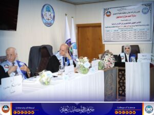 ترأس لجنة المناقشة الأستاذ الدكتور نبيل صبيح عثمان خضر، وعضوية كل من الأستاذة الدكتورة هناء شاكر محمود أحمد، والأستاذ الدكتور محمد سالم شيت مصطفى، وبإشراف وعضوية الأستاذ سعد حساني سلطان جرجيس علاوي.