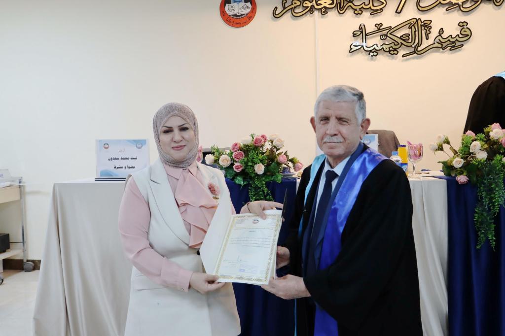 ناقش قسم الفيزياء في كلية العلوم جامعة الموصل يوم الخميس الموافق 3 تشرين الثاني 2022 رسالة ماجستير بعنوان ” محاكاة خلية شمسية متراكبة و دراسة خصائصها ” .حضر جانباً منها السيدة عميد الكلية الأستاذ الدكتورة هيام عادل إبراهيم والسيد المعاون الإداري والسيد رئيس القسم اضافة الى عدد من تدريسيي الكلية وطلبة الدراسات العليا .تناولت الرسالة التي تقدمت بها الطالبة (مها خالد عبدالأمير ) دراسة تركيب خلية شمسية باستخدام برنامج المحاكاة SCAPS-1D قائمة على غشاء CdSe مكونة في البداية من ثلاث طبقات هي طبقة الامتصاص p-CdSe و الطبقة العازلة n-CdSe و الطبقة النافذة ITO و دراسة مدى تأثير كل من سمك و تركيز حاملات هذه الطبقة في اداء الخلية المقترحة و اختيار السماك و التراكيز المثلى لكل طبقة و الحصول على تركيب مثالي للخلية و من ثم دراسة مدى تأثير كل من درجة الحرارة و شدة الاضاءة في اداء الخلية و اخيرا اضافة طبقة رابعة للخلية و التعرف على مدى اهمية اضافة هذه الطبقة للخلية.تطرقت الرسالة إلى تحضير أغشية CdSe على ارضيات من الزجاج و ITO بطريقة الحمام الكيميائي و دراسة الخواص البصرية و التركيبية و الكهربائية للغشاء و التعرف على مدى تحسس الاغشية المحضرة للإضاءة .ترأس لجنة المناقشة الأستاذ المساعد الدكتور نوفل يوسف جميل كلية النور الجامعة وعضوية كل من الأستاذ المساعد الدكتور سمير محمود والمدرس الدكتور محمد محمود وبأشراف الأستاذ الدكتور ليث محمد سعدون .شعبة الإعلام والعلاقات العامةالخميس 3 تشرين الثاني 2022