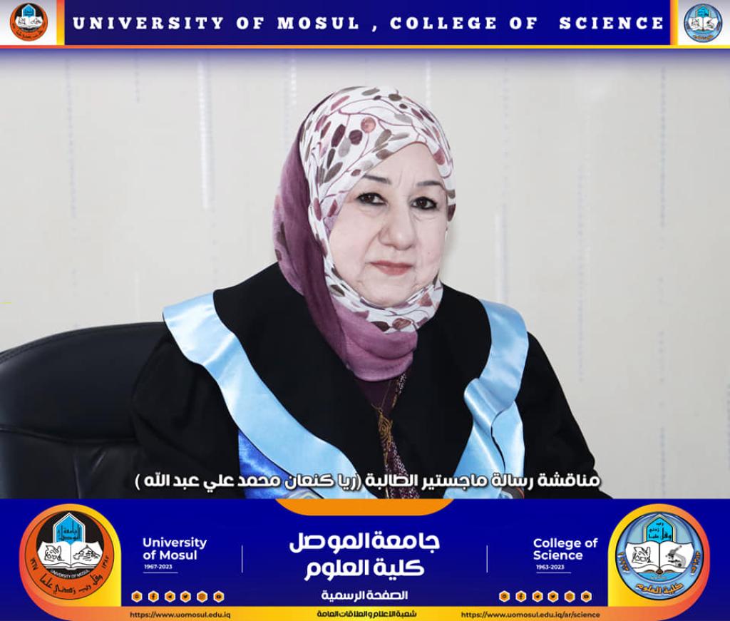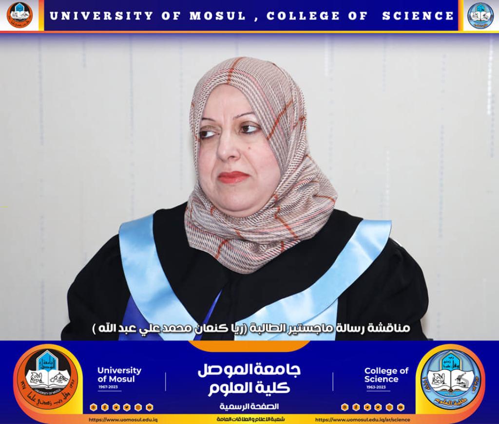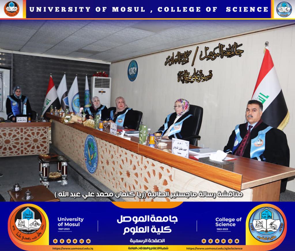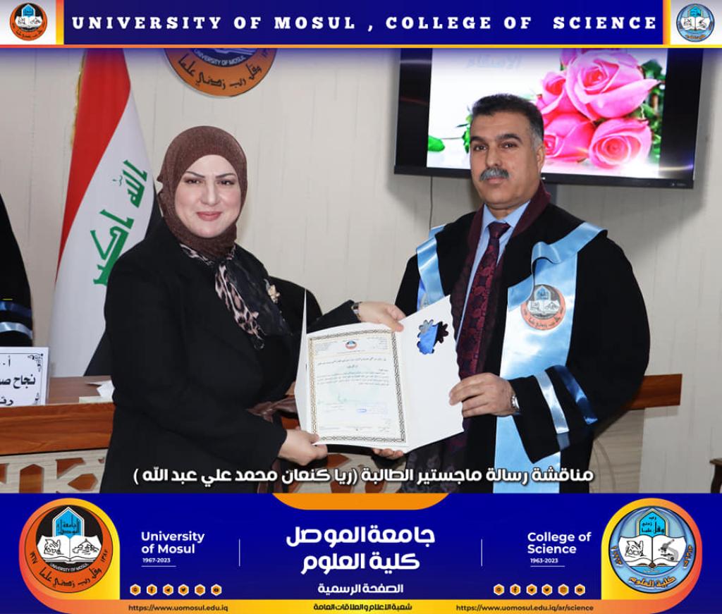 ناقش قسم علوم الحياة بكليه العلوم في جامعة الموصل رساله ماجستير بعنوان ” دراسة مقارنه لتأثير المستخلص المائي لأزهار نبات القرنفل E caryophyllus على حيوية وفعالية انزيم الاسيتايل كولين في عدد من الديدان الشريطيه Monozoic and polyzoic ) يوم الإثنين الموافق 30 كانون الثاني 2023.حضر جانباً منها السيدة عميد الكلية الأستاذ الدكتورة هيام عادل إبراهيم والساده معاوني العميد والسيد رئيس القسم وعدد من تدريسي الكلية .تناولت الدراسة التي تقدمت بها الطالبة ( ريا كنعان محمد علي ) من فرع الحيوان عدد من المحاور منها: بيان تأثير المستخلص المائي لأزهار نبات القرنفل وبتراكيز 10و20 غم /100مل على حيوية الديدان الشريطية المتطفلة في الأسماك , أظهرت النتائج ان مدة شلل وموت الديدان (القتل التدريجي ) كانت أقل عند التركيز 20 غم /100مل عنها عند التركيز 10غم /100مل.كما أظهرت النتائج تباين قيم البروتين الكلي للديدان الشريطية تبعاً لاختلاف الاجناس واختلاف مضائفها كما تباينت الفعالية النوعية لانزيم الاسيتايل كولين استريز (AchE) في الديدان الشريطية وكانت الدودة قرنفليه الرؤيس K.armeniaca اكثر وفرة للبروتين عن ما هو عليه في الدودتين A.heteropleura, ،B.acheilognathi وحسب أشهر الدراسة.ترأس لجنه المناقشة الأستاذ المساعد الدكتورة نجاح صبحي نايف وعضوية كل من الأستاذ المساعد الدكتورة وحدة عبد الرزاق محمود والأستاذ المساعد الدكتور أحمد عقيل خضير من جامعة هولير الطبية وبإشراف الأستاذ الدكتورة سندس نذير حميد.شعبة الإعلام والعلاقات العامةالإثنين 30 كانون الثاني 2023