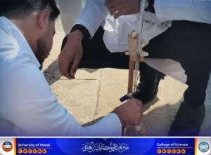 تضمنت الزيارة تطبيق عملي في منطقة القصور في كلية الزراعة والغابات جامعة الموصل لقياس تركيز الكلور المتبقي في الماء وأيون الكلورايد ضمن مختبر التلوث.