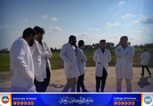 تضمنت الزيارة تطبيق عملي في منطقة القصور في كلية الزراعة والغابات جامعة الموصل لقياس تركيز الكلور المتبقي في الماء وأيون الكلورايد ضمن مختبر التلوث.