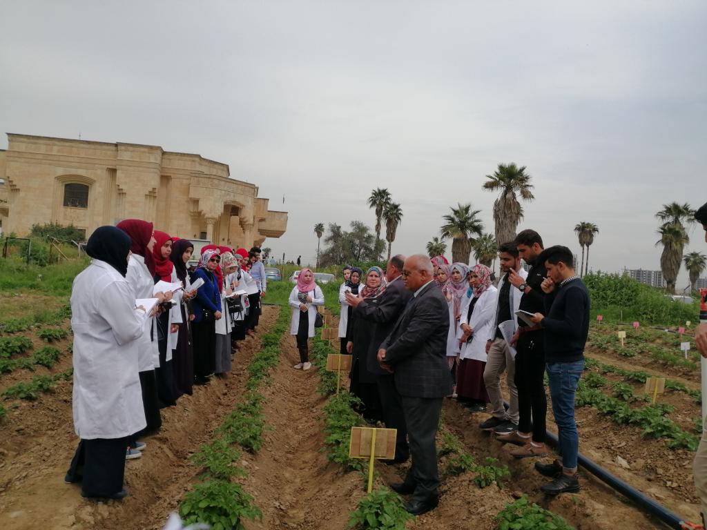 ضمن برنامج الزيارات والنشاطات العلمية لطلبة القسم، أجرى طلبة المرحلة الاولى وباشراف اساتذة مادة علم النبات النظري والعملي زيارة علمية إلى كلية الزراعة والغابات، تضمنت الزيارة جولة في حقول نباتات الباقلاء والبزاليا والبطاطا والخس والفراولة والحدائق الهندسية ونباتات الزينة، هدفت الزيارة إلى التعرف على العديد من النباتات وطريقة انباتها واكثارها والتعرف أيضا على أجزاء النبات و الفائدة من الزراعة المتداخلة لبعض النباتات