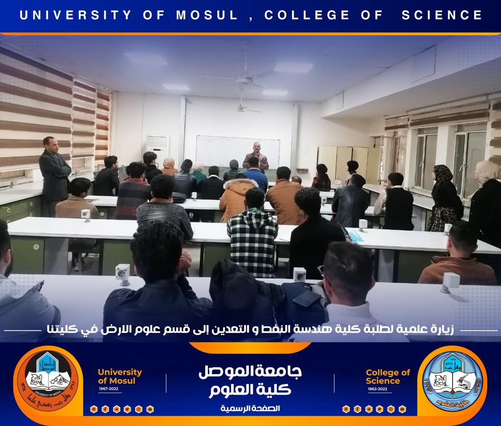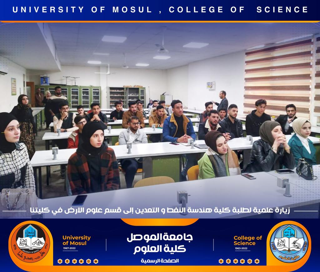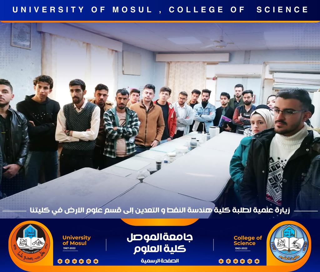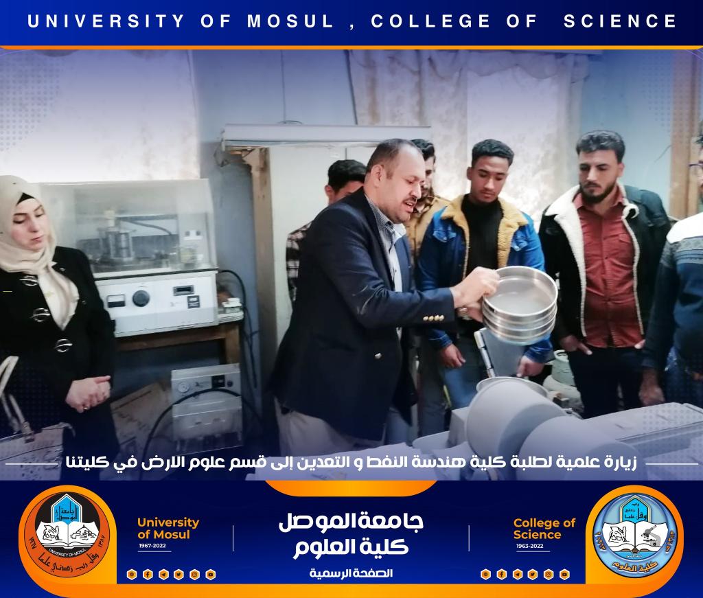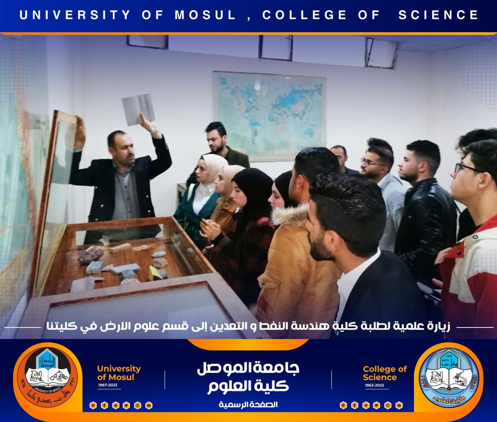 انطلاقاً من آفاق التعاون العلمي البنّاء بين كليات جامعة الموصل ، استقبل قسم علوم الأرض في كليتنا طلبة كلية هندسة النفط و التعدين صباح يوم الأربعاء الموافق 30 تشرين الثاني 2022.تم استقبال و الترحيب بالطلبة من قبل السيد رئيس القسم الأستاذ الدكتور عمر أحمد مولود البدراني والسيد مقرر القسم الدكتور فلاح عبد المعماري والدكتور رضوان الأتروشي.هدفت الزيارة إلى التعرف على قسم علوم الأرض و زيارة الورشة الجيولوجية الخاصة بعمل الشرائح الصخرية وطحن النماذج ، كما استكمل الطلبة جولتهم في القسم بزيارة المتحف الجيولوجي ومشاهدة أنواع الصخور ومتحجرات الأحياء التي عاشت وماتت ودفنت وتحجرت منذ ملايين السنين ، فضلاً عن التعريج على بعض المفاهيم المتعلقة بالنفط.أهلاً وسهلاً بضيوف كليتنا الرائعونشعبة الإعلام والعلاقات العامةالجمعة 2 كانون الأول 2022