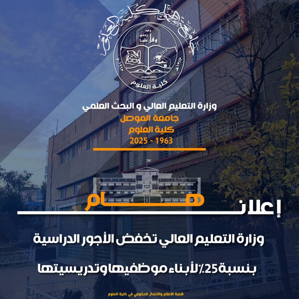 تُعلن شعبة الدراسات العليا في كلية العلوم عن صدور قوائم القبول للمتقدمين للعام الدراسي 2025 – 2026.