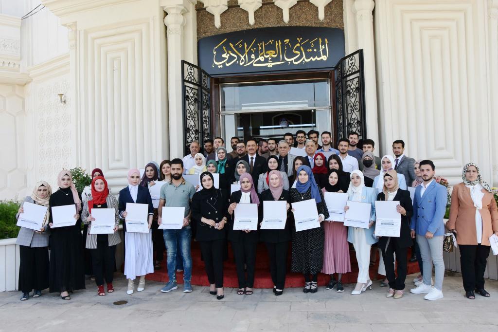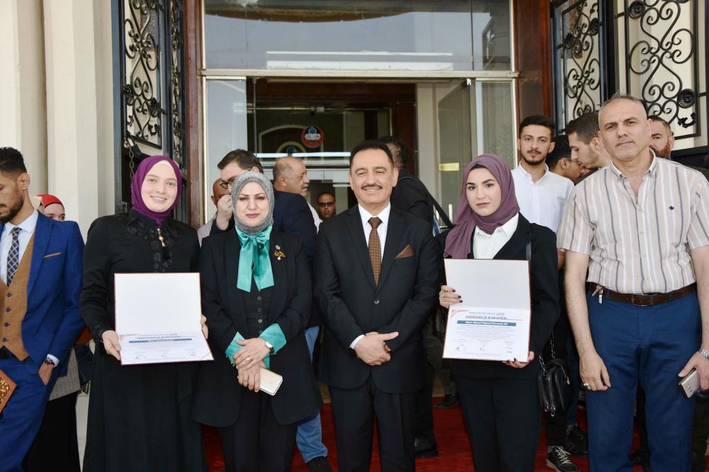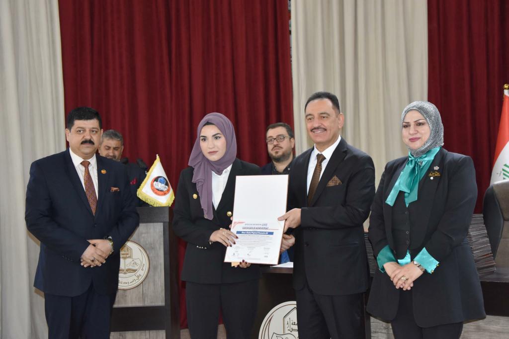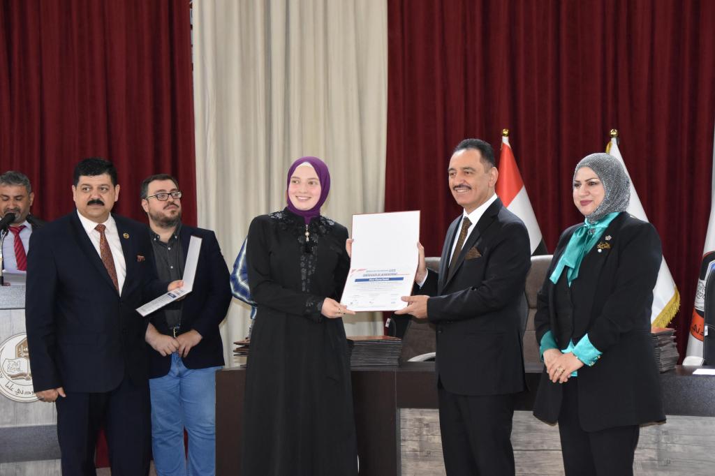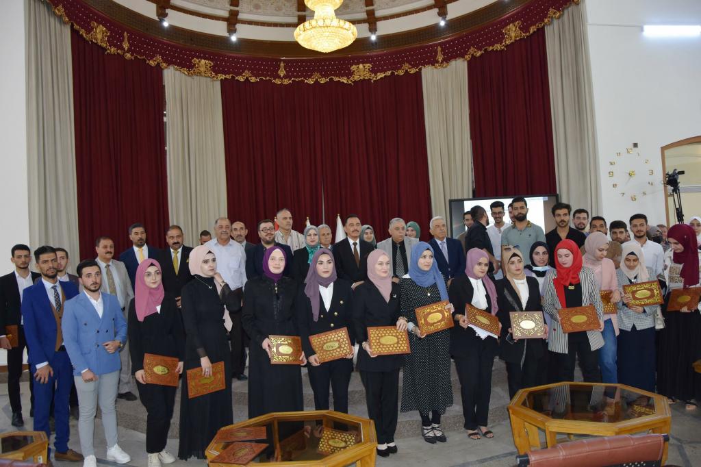 برعاية السيد رئيس جامعة الموصل الأستاذ الدكتور قصي كمال الدين الأحمدي ، و بدعم وتشجيع السيدة عميد كلية العلوم الأستاذ الدكتورة هيام عادل إبراهيم ، شارك عدد من طلبة كلية العلوم في ( مسابقة الطالب المترجم في الشرق الأوسط وشمال أفريقيا – الدورة الثانية التي أقامتها كلية الآداب بالتعاون مع مؤسسة أفكار بلا حدود – نيويورك ) وبالاشتراك مع مؤسسة ويكيبيديا العالمية بمشاركة عدة جامعات عراقية منها جامعة الموصل وجامعة الأنبار وجامعة الكوفة وكلية التراث الجامعة .هذا و قد حصلت جامعة الموصل على المركز الأول بين نظيراتها ، وكان لطلبة كلية العلوم حضور متميز و مراكز متقدمة في المسابقة ، حيث نالت الطالبة في المرحلة الرابعة من قسم الفيزياء ( نور عبد المجيد حسين ) على المرتبة الاولى بجائزة البلاتينيوم كأفضل مترجم و محرر، في حين حصدت الطالبة في المرحلة الثالثة من قسم الكيمياء ( نور كمال صلاح ) على الجائزة الفضية ضمن الجوائز الفضية في مجال الترجمة.من جانب آخر تسلم الطلبة الشهادات والجوائز التقديرية بحفلٍ أقامته كلية الآداب في رحاب قاعة المنتدى العلمي الأدبي صباح هذا يوم الأحد الموافق 29 أيار 2022 بحضور الفاضل السيد رئيس الجامعة والسيدة عميد كلية العلوم و عدد من عمداء الكليات .بدورها تتقدم أسرة كلية العلوم ممثلة بالسيدة العميد بأحر التهاني والتبريكات للطالبتين بمناسبة هذا الانجاز المتميز، راجين لهما ولجميع طلبتنا المزيد من التقدم و العطاء في مجالات الأنشطة العلمية و الثقافية والاجتماعية.الف الف مبارك