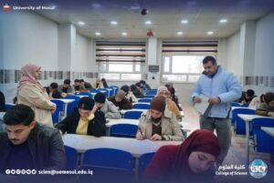 بتوفيـقٍ ومَعِيَّـــةٍ من اللّه انطلقـتْ اليـوم الإثنيـن المُصـادف 29 كانـون الأوَّل 2025 الإمتحانـات النَّظرِيَّــةِ النِّهائِيَّـــةِ للفصـلِ الدِّراسـي الأوَّل / الدَّور الأوَّل للعـام الدَّراسـي 2025-2026 وللدِّراستيـن الصَّباحِيَّـة والمسائِيَّــة، وتفقَّـدت السيـدة عميـد كُليَّـــةِ العلـــومِ الأُستـاذ الدكتـورة هِيــام عـادل إبراهيـم المُحترمـة برفقة السيد المعاون العلمي الأستاذ الدكتور ريان مازن فيصل والسادة رؤساء الأقسام المحترمين سيـر الإمتحانـات في مختلـفِ الأقسـامِ، وأشادت بحُسنِ التنظيمِ والاستعداداتِ العاليَةِ التي وفّرتها الكليّةُ لتأمينِ بيئةٍ امتحانيّةٍ مناسبةٍ وآمنةٍ للطلبةِ، وأكّدتْ السيدةُ العميدُ على دعمِ الكليّةِ الكاملِ للطلبةِ في هذه المرحلةِ الهامّة، مشيرةً إلى أنَّ هذه الامتحاناتِ هي تتويجٌ لجهودِهم طوالَ الفصـلِ الدراسيِّ، ومُتمنّيةً لهم التوفيقَ والتميّزَ في مسيرتِهم العلميّةِ.