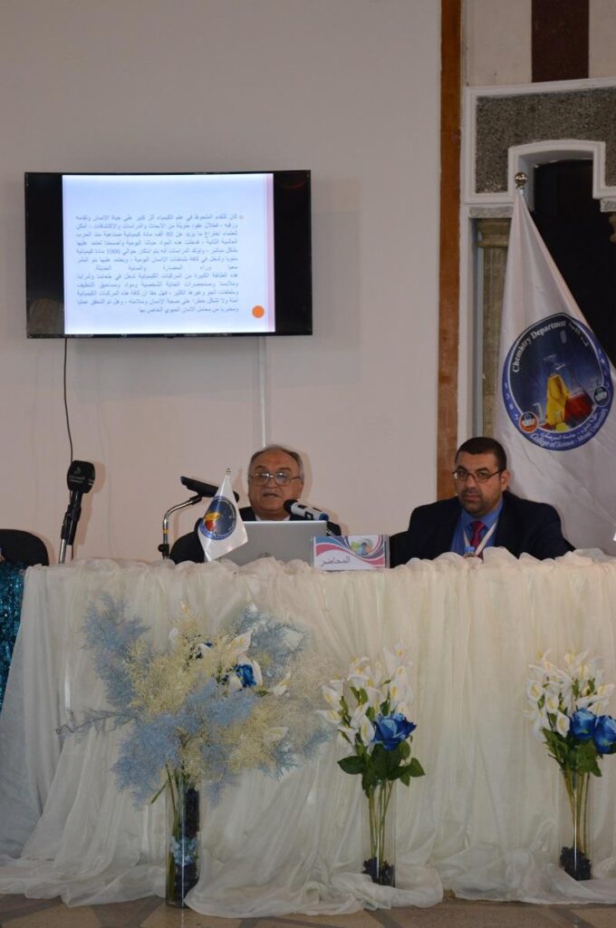 القى الاستاذ الدكتور انور مصطفى عزت الفيضي عميد الكلية كلمة الافتتاح للندوة العلمية لقسم الكيمياء الموسومة (التعامل مع المواد الكيميائية وكيفية معالجتها) وذلك يوم الاثنين 09/04/2019 على قاعة المنتدى العلمي والادبي حيث قدم نبذة عن قسم الكيمياء والانجازات التي حققها خلال فترة النصف قرن منذ تاسيسه عام 1963 وثمن فيها دور جامعة الموصل في احتضان النشاطات العلمية