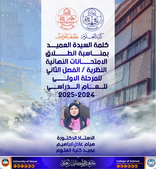 وقد تحقق هذا النجاح بفضل الدعم المستمر والمتابعة الحثيثة من السيد رئيس جامعة الموصل، الأستاذ الدكتور وحيد محمود الإبراهيمي المحترم، الذي كان لدوره القيادي أثرٌ كبير في دفع مسيرة التطوير الأكاديمي في الجامعة.