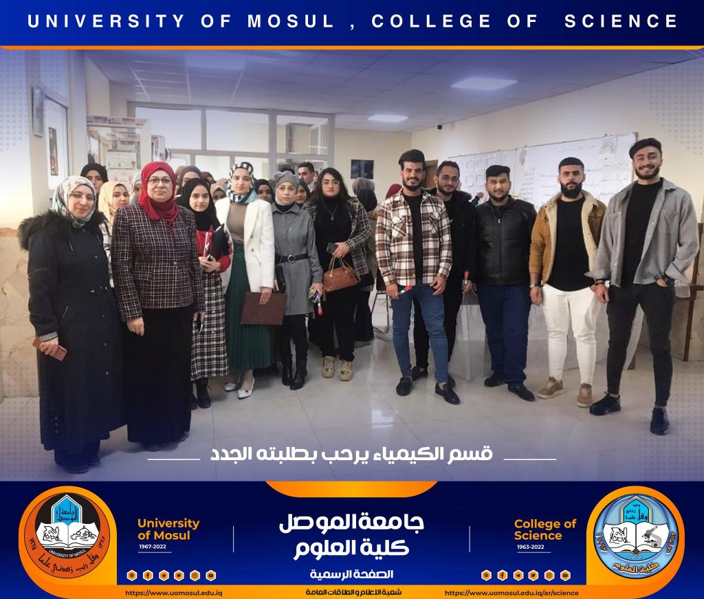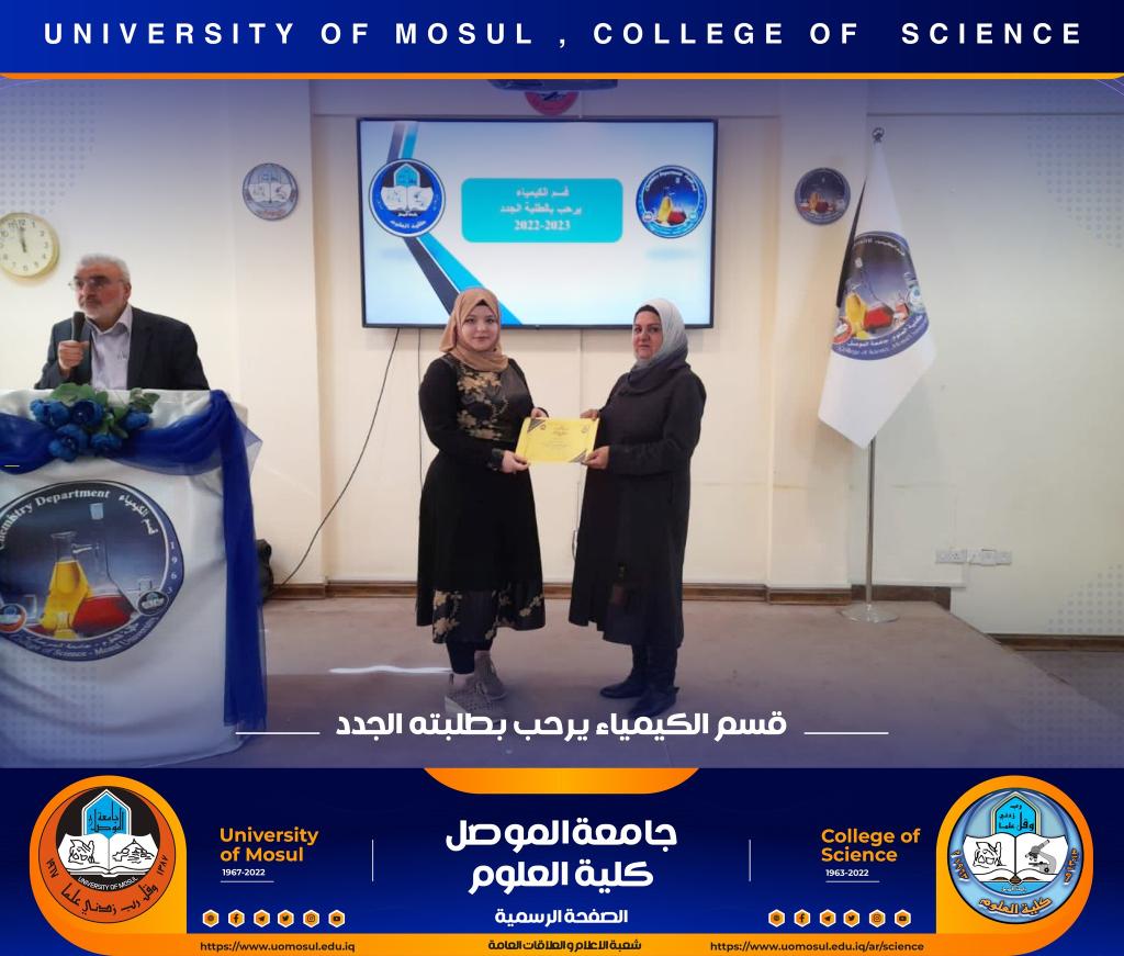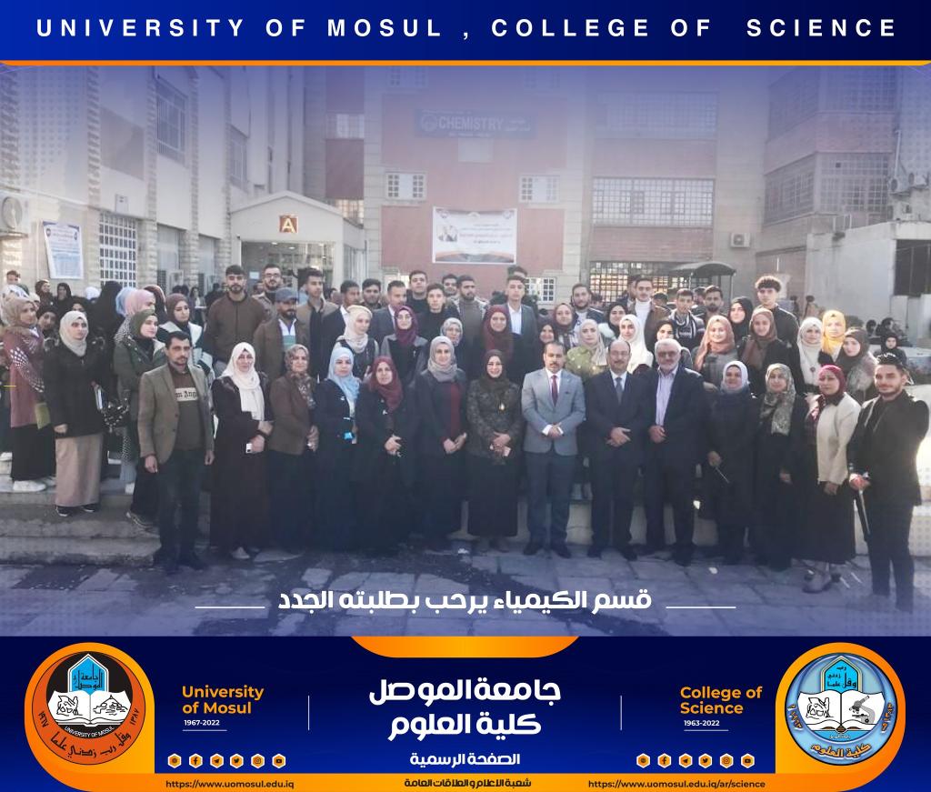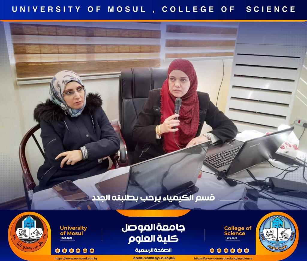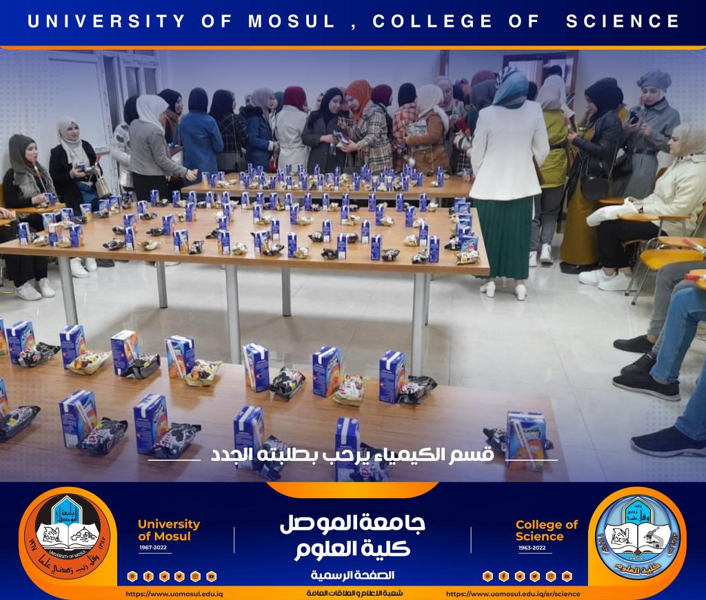 بتوجيه السيدة عميد كلية العلوم الأستاذ الدكتورة هيام عادل إبراهيم وباشراف السيد رئيس قسم الكيمياء الأستاذ الدكتور سالم جاسم ، وضمن فعاليات استقبال الطلبة الجدد نظّم قسم الكيمياء في كليتنا ورشة عمل تحت عنوان ” ارشادات السلامة في مختبرات الكيمياء ” .تضمنت الفعالية نبذة عن قسم الكيمياء والهيكلية الادارية للعمادة والقسم تلاها توجيهات تربوية إرشادية و تعليمات طلابية عامة تخص الطلبة من تعليمات انضباط الطلبة و التعليمات الامتحانية والتوجيهات العامة للطلبة الجدد.كما تمّ القاء محاضرة عن مخاطر المواد الكيميائية و عمل جولة تعريفية داخل أروقة القسم للتعرف على القاعات والمختبرات التي سيستخدمها الطلبة .القيت كذلك محاضرة عن الممارسة المختبرية الجيدة تضمنت التأكيد على استخدام وسائل الأمان داخل المختبر من ارتداء الصدرية والنظارات الواقية والكفوف بعدها تم توزيع شهادات المشاركة للطلبة .شعبة الإعلام والعلاقات العامةالثلاثاء 6 كانون الأول 2022