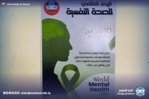 في إطار نشاطات لجنة الإرشاد التربوي في قسم علوم الحياة – كلية العلوم / جامعة الموصل، وبالتعاون مع عمادة الكلية، نُظمت فعالية توعوية بمناسبة اليوم العالمي للصحة النفسية، الذي يُصادف العاشر من تشرين الأول من كل عام (10/10/2025).