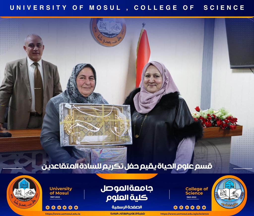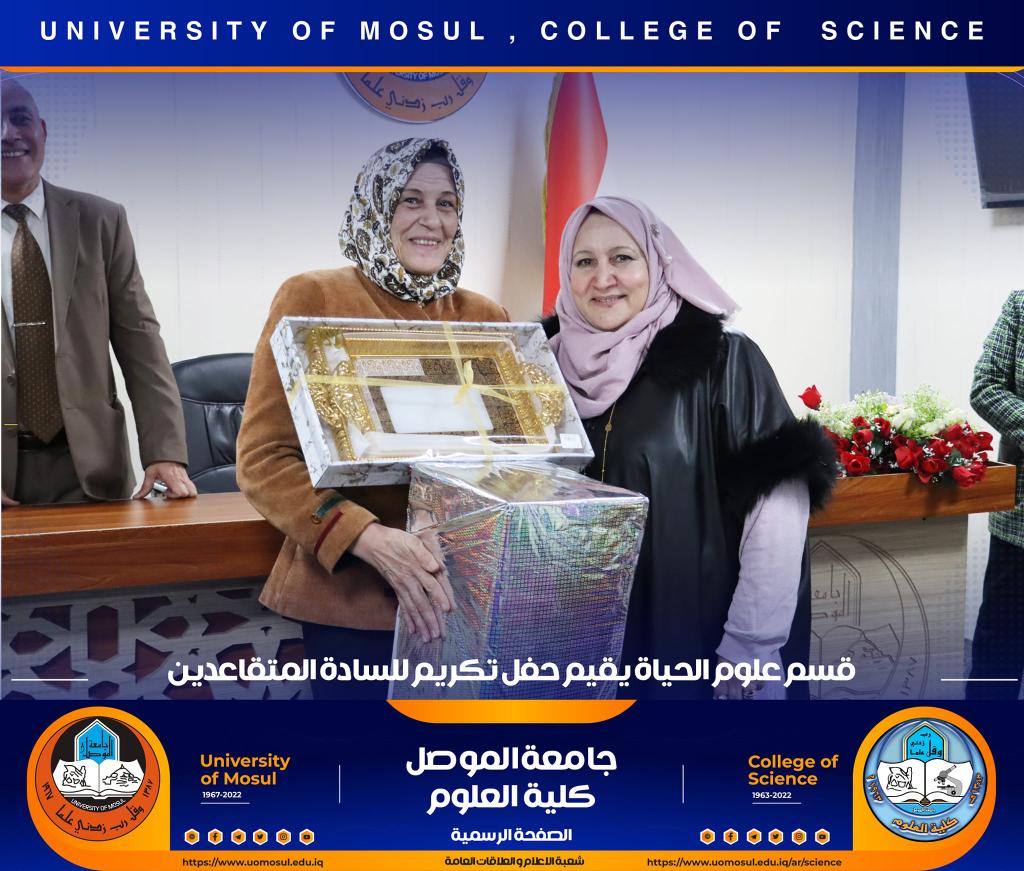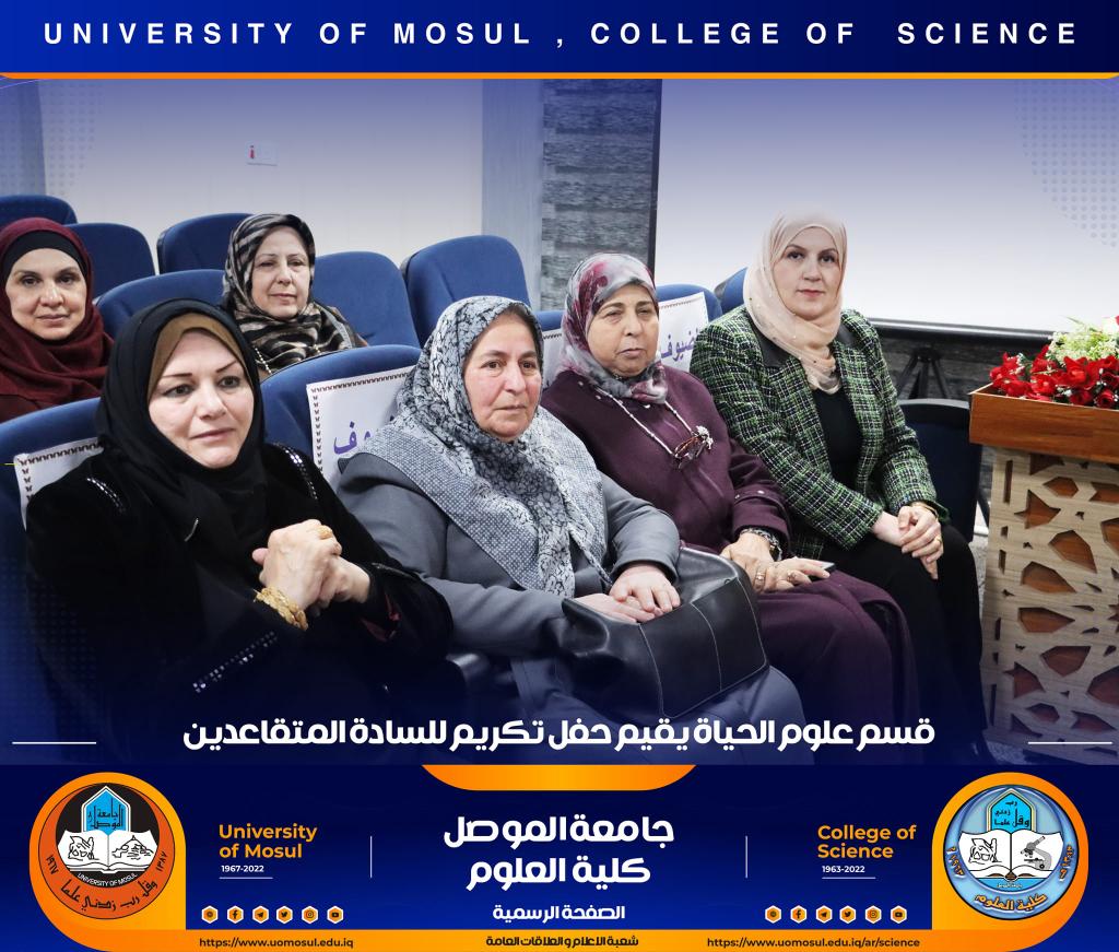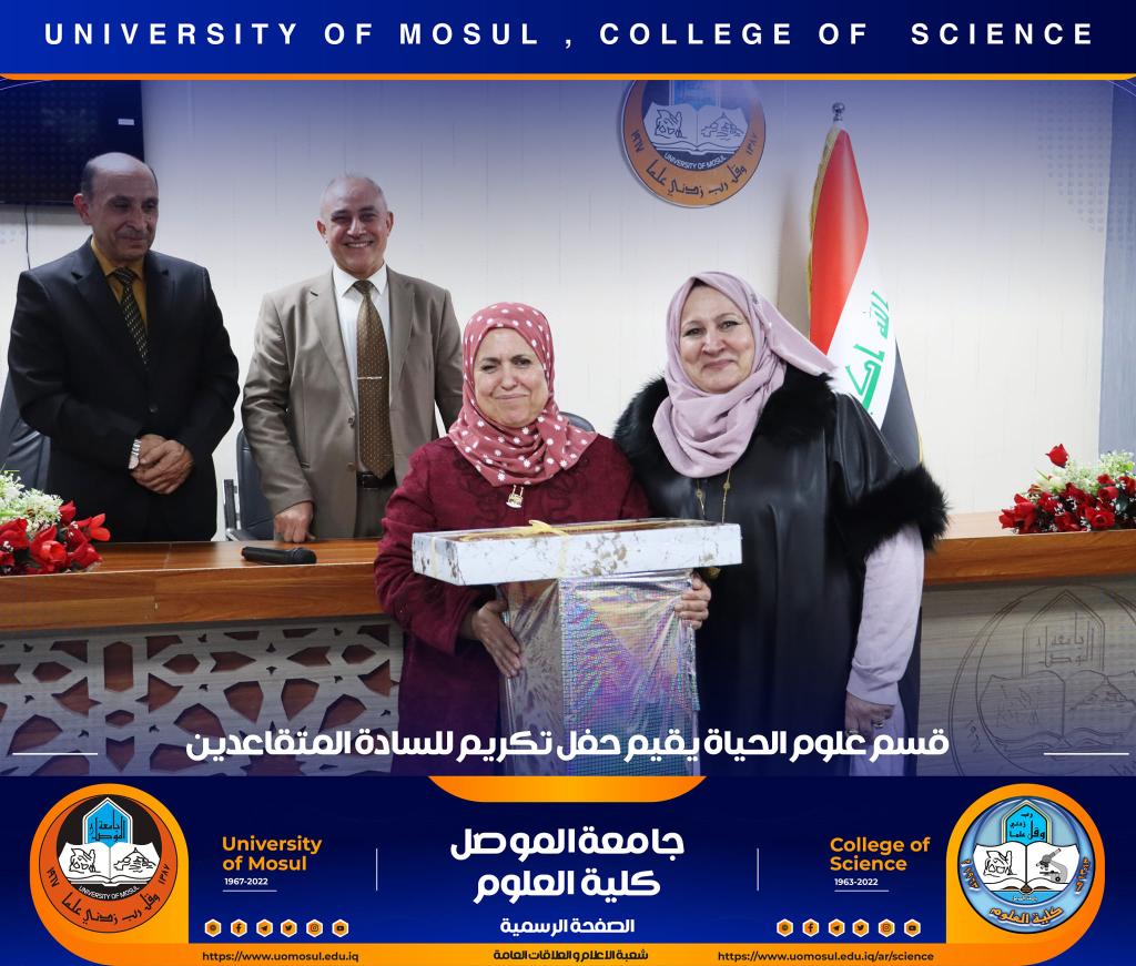 ضمن نشاطات قسم علوم الحياة الاجتماعية ، ولأجل ترسيخ جذور المودة و الالفة و التواصل ما بين منتسبي القسم وبحضور السيد رئيس القسم الأستاذ المساعد الدكتور رائد سالم الصفار و السيد مقرر القسم ، أقامت اللجنة الاجتماعية جلسة تكريم لنخبة من الأساتذة والموظفين الأفاضل الذين احيلوا على التقاعد وذلك ظهر يوم الإثنين الموافق 12 كانون الأول 2022 .حيث استهلت الجلسة بكلمة قصيرة للسيد رئيس القسم أثنى خلالها على الدور المميز للأساتذة المتقاعدين وعلى الجهود التي بذلوها خلال مسيرتهم العلمية ، تلى ذلك توزيع الهدايا التقديرية على الأساتذة المتقاعدين وهم كل من ( الأستاذ الدكتورة أديبة يونس شريف ، الأستاذ المساعد خالدة عبد الله سليمان ، الأستاذ المساعد بشرى خليل )، بعد ذلك اقيمت مأدبة غداء على شرف السادة المتقاعدين.شعبة الإعلام والعلاقات العامةالإثنين 12 كانون الأول 2022