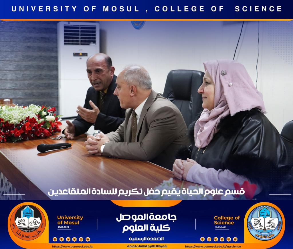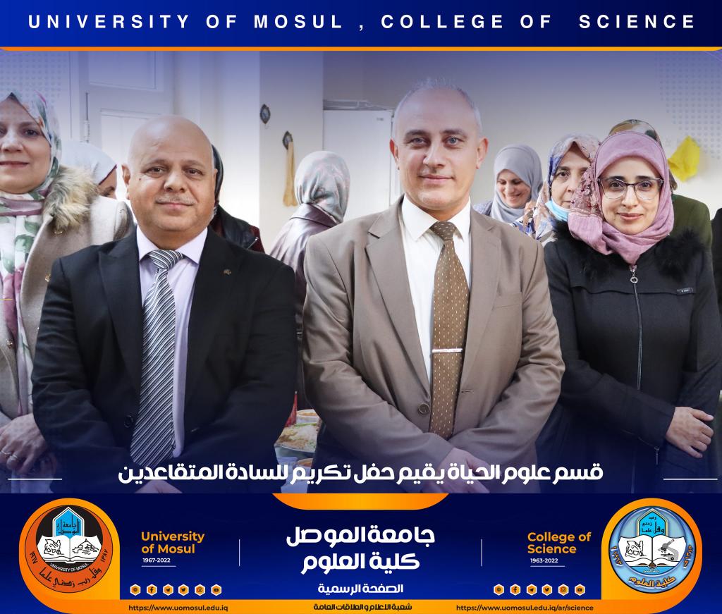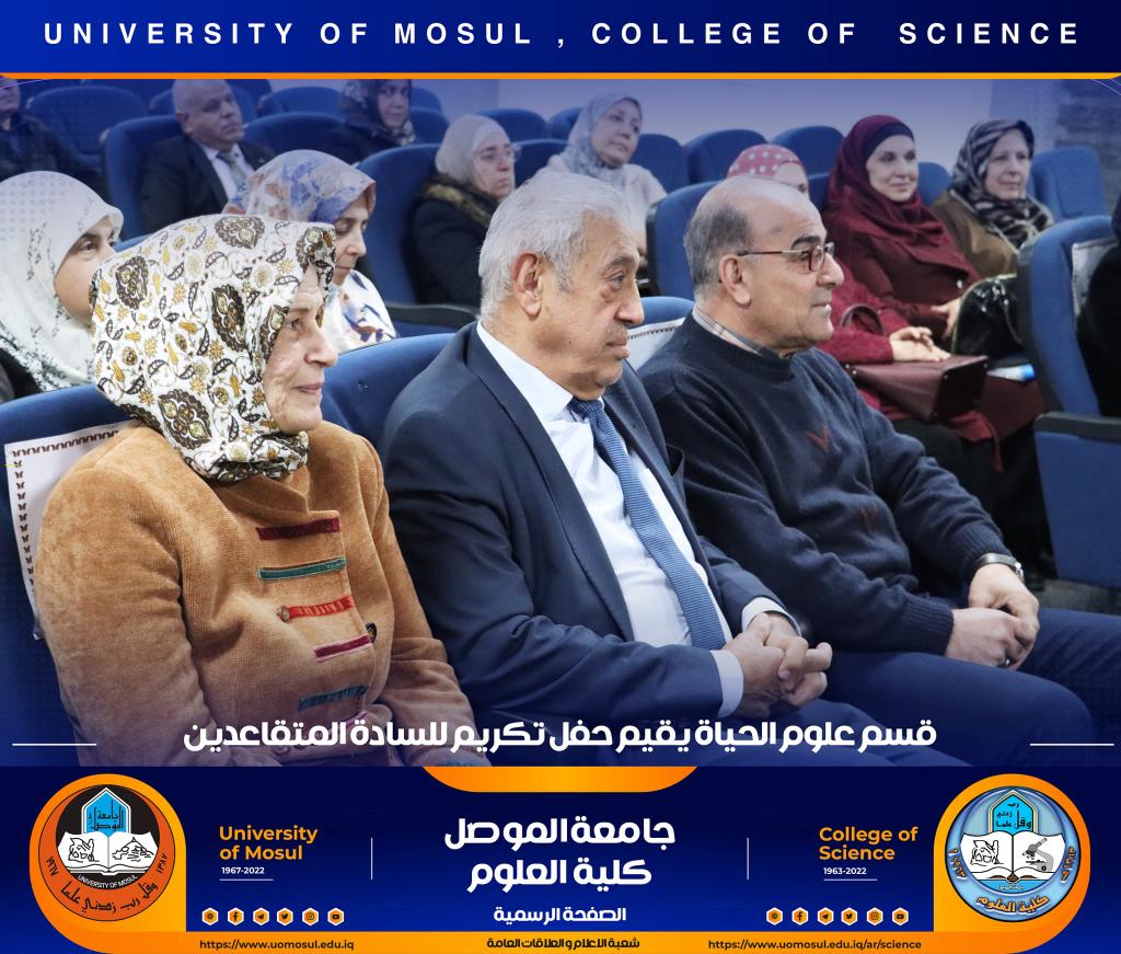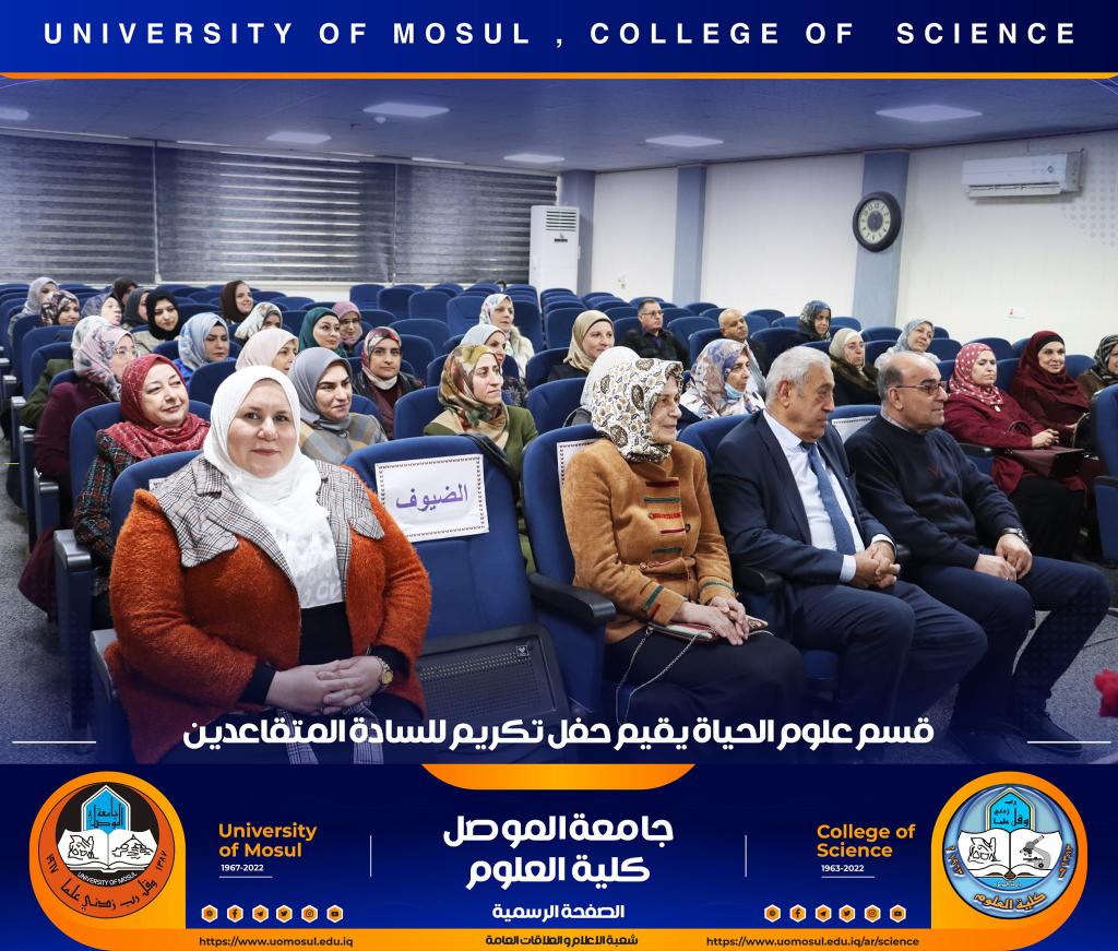 ضمن نشاطات قسم علوم الحياة الاجتماعية ، ولأجل ترسيخ جذور المودة و الالفة و التواصل ما بين منتسبي القسم وبحضور السيد رئيس القسم الأستاذ المساعد الدكتور رائد سالم الصفار و السيد مقرر القسم ، أقامت اللجنة الاجتماعية جلسة تكريم لنخبة من الأساتذة والموظفين الأفاضل الذين احيلوا على التقاعد وذلك ظهر يوم الإثنين الموافق 12 كانون الأول 2022 .حيث استهلت الجلسة بكلمة قصيرة للسيد رئيس القسم أثنى خلالها على الدور المميز للأساتذة المتقاعدين وعلى الجهود التي بذلوها خلال مسيرتهم العلمية ، تلى ذلك توزيع الهدايا التقديرية على الأساتذة المتقاعدين وهم كل من ( الأستاذ الدكتورة أديبة يونس شريف ، الأستاذ المساعد خالدة عبد الله سليمان ، الأستاذ المساعد بشرى خليل )، بعد ذلك اقيمت مأدبة غداء على شرف السادة المتقاعدين.شعبة الإعلام والعلاقات العامةالإثنين 12 كانون الأول 2022