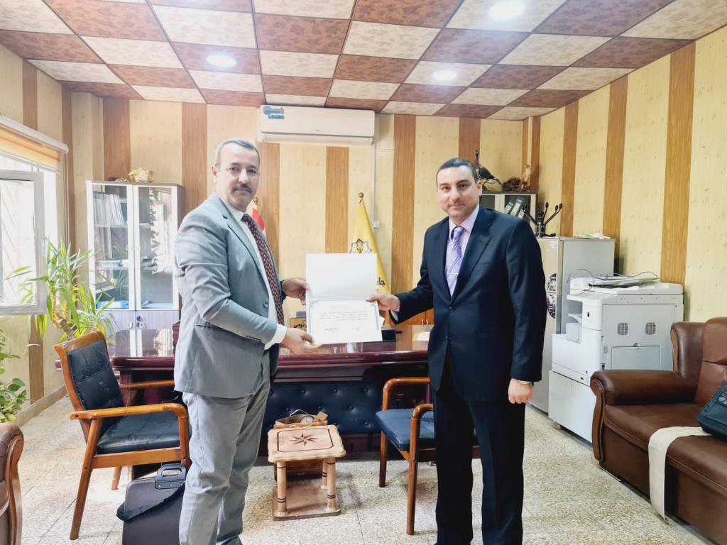 تتقدم أسرة كلية العلوم ممثلة بالسيدة العميد الأستاذ الدكتورة هيام عادل إبراهيم بأجمل عبارات التهاني والتبريكات الى الموظفة في قسم علوم الحياة ( منار فوزي ذنون ) بمناسبة مناقشة رسالتها للماجستير بتخصص الأحياء المجهرية و الموسومة ” الشجرة الوراثية للفيروس المعوي المسبب للإسهال عند الأطفال الأقل من خمس سنوات في مدينة الموصل ” في كلية الطب البيطري / جامعة تكريت يوم الثلاثاء الموافق 25 تشرين الأول 2022.شارك بعضوية لجنة المناقشة الأستاذ الدكتور محمود عبد الجبار الطوبجي وأشرف عليها اشرافاً مشتركاً الأستاذ المساعد الدكتور أنمار أحمد داؤود.الف مباركشعبة الإعلام و العلاقات العامةالأربعاء 26 تشرين الأول 2022.
