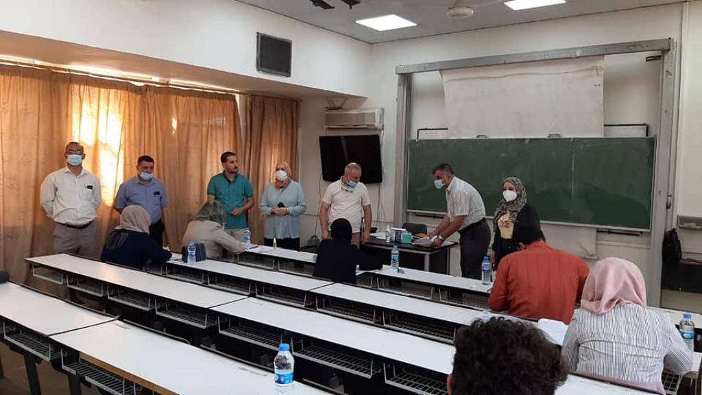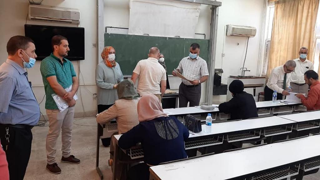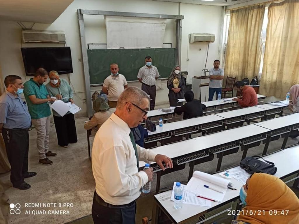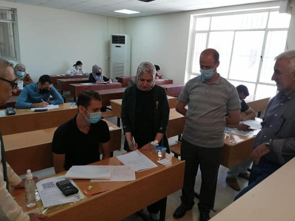 أجرت كلية العلوم صباح يوم الاثنين 21حزيران 2021 الامتحان التنافسي للمتقدمين للدراسات العليا في أقسام الكلية للعام الدراسي 2021-2022 ، وقد تفقدت السيدة العميد الأستاذ المساعد الدكتورة هيام عادل الطائي سير الامتحانات في أقسام علوم الحياة/الكيمياء/الفيزياء/علوم الأرض واطلعت على الاجراءات الصحية المتبعة والتباعد الاجتماعي فضلاً عن تأكيدها على متابعة تصليح الدفاتر الإمتحانية و اعلان النتائج ضمن التعليمات الوزارية متمنية للمتقدمين النجاح و الموفقية .يجدر بالذكر ان عدد المتقدمين للدراسات العليا في اقسام الكلية العلمية الذين يحق لهم اداء الامتحان التنافسي بلغ 192 متقدم..و قد استمرت عمليات تصحيح الدفاتر الإمتحانية الى وقت متأخر ما بعد الدوام الرسمي مع تهيئة كل الظروف المناسبة للكادر التدريسي واللجان التدقيقية ومن المؤمل اعلان نتائج الامتحان في وقت قريب ان شاء الله .